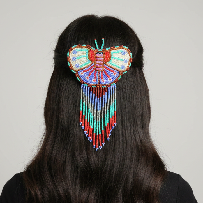 Butterfly Beaded Barrettes with Fringes