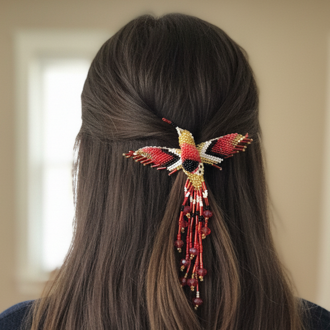 Our jackets come from Indigenous countries—Peru, Guatemala, Mexico, and Ecuador—and are 100% handmade. Our blankets are manufactured in Canada, and our beadwork is made by local artisans in Alberta.