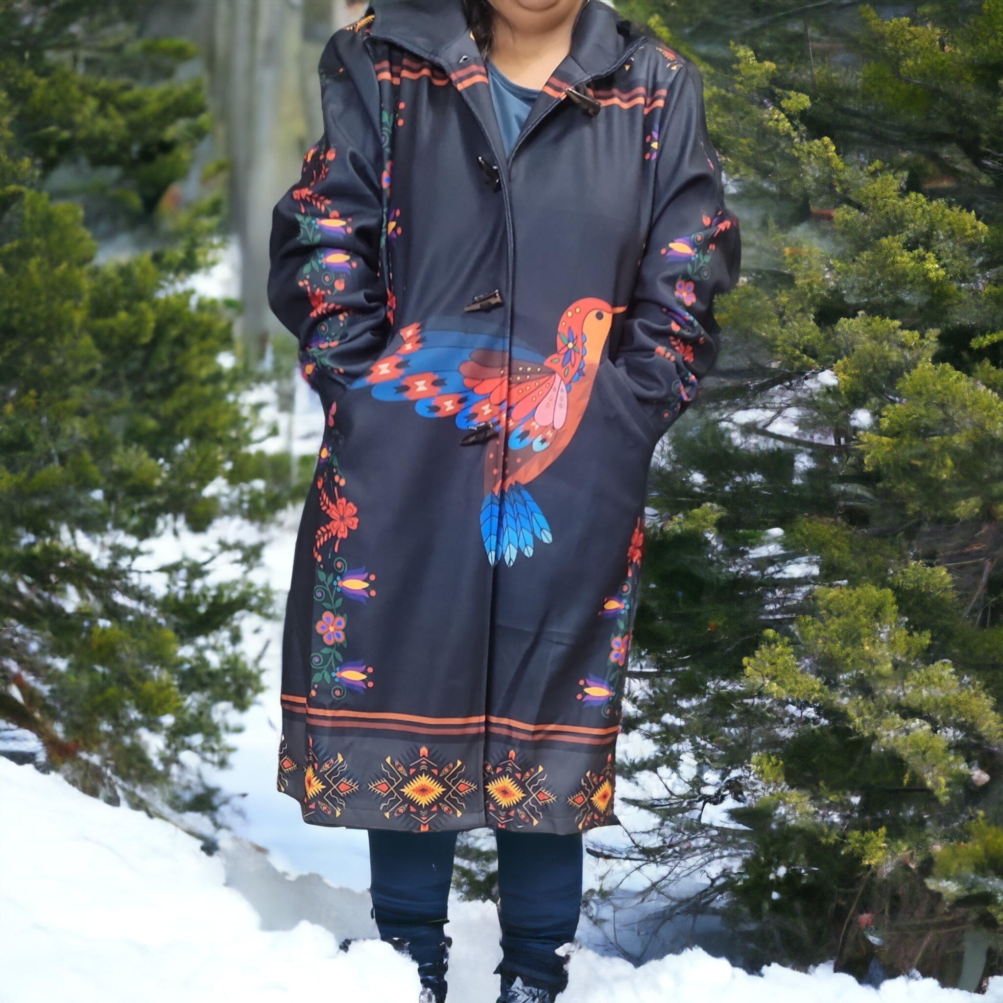 Our jackets come from Indigenous countries—Peru, Guatemala, Mexico, and Ecuador—and are 100% handmade. Our blankets are manufactured in Canada, and our beadwork is made by local artisans in Alberta.