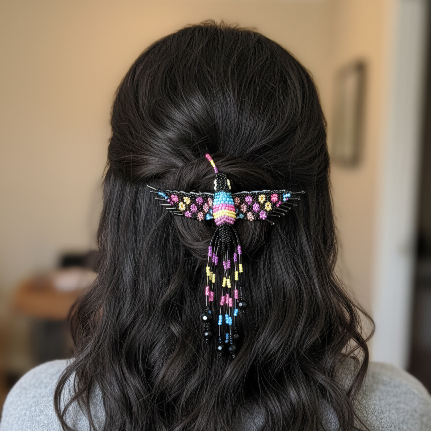 Our jackets come from Indigenous countries—Peru, Guatemala, Mexico, and Ecuador—and are 100% handmade. Our blankets are manufactured in Canada, and our beadwork is made by local artisans in Alberta.