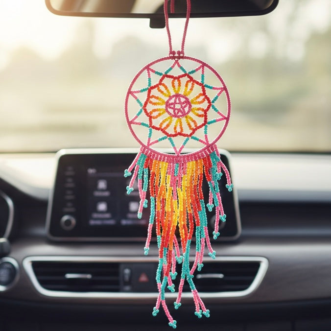 Embrace the beauty of the cosmos with this enchanting Celestial Beaded Handmade Dreamcatcher. Designed to inspire peace, clarity, and celestial wonder, this piece adds a gentle sparkle to any space. Carefully handcrafted with delicate beads and intricate threads, it brings both artistry and meaning to your decor.