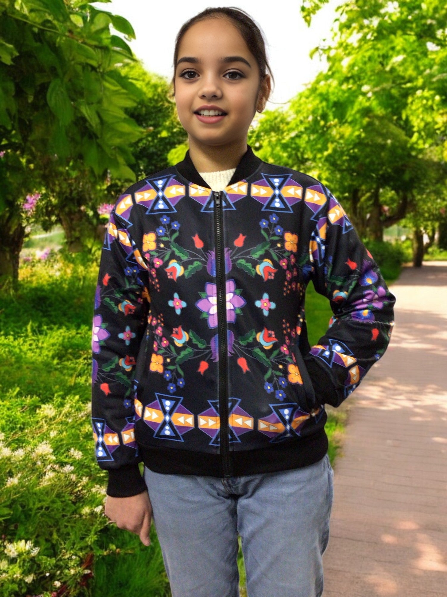The OLDTRIBES™ Kids Bomber Jacket is more than just clothing—it’s a celebration of heritage, artistry, and functionality. Perfect for kids on the go, it’s a stylish and meaningful layer for any occasion.