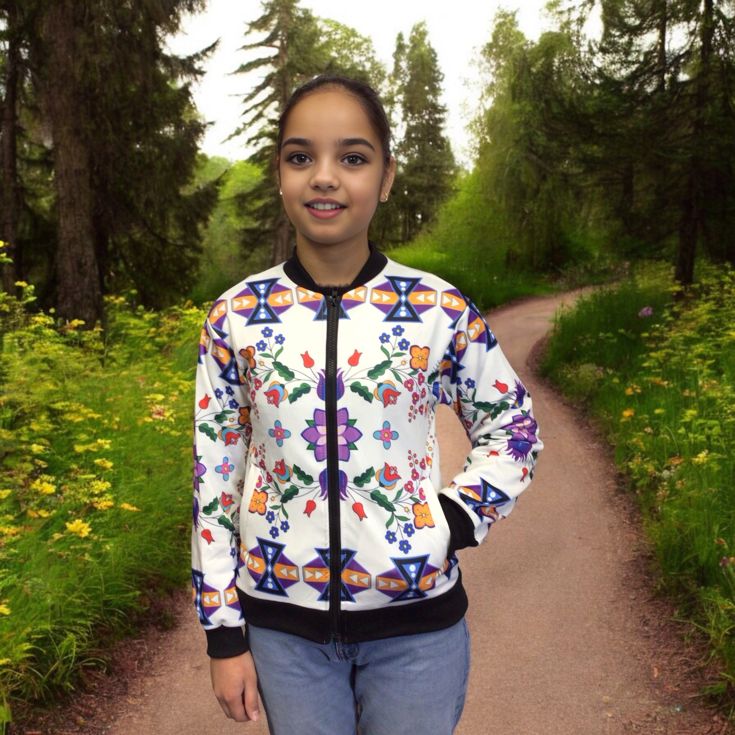 Lightweight and stylish, the OLDTRIBES™ Kids Bomber Jacket is the perfect blend of comfort, functionality, and cultural elegance. Designed for spring and summer, these jackets feature breathable materials and bold Indigenous-inspired patterns, making them a versatile and timeless addition to any wardrobe.
