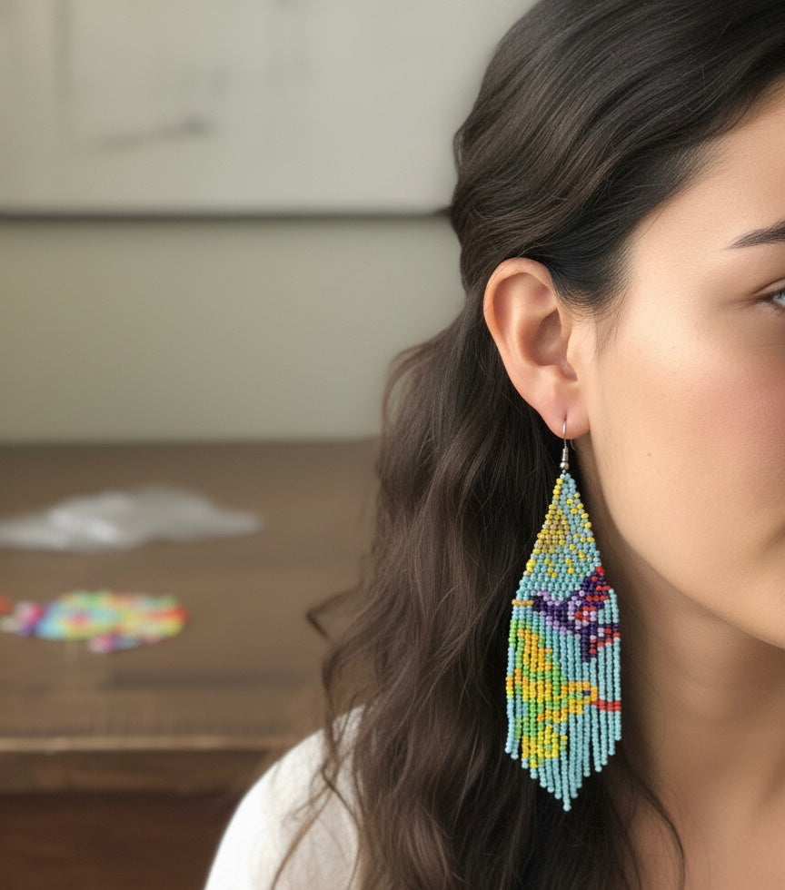 Celebrate the artistry of Indigenous beadwork with the Sky Dancer Beaded Earrings—a bold, handcrafted tribute to color, nature, and cultural spirit. These earrings are more than accessories; they are stories woven bead by bead.
