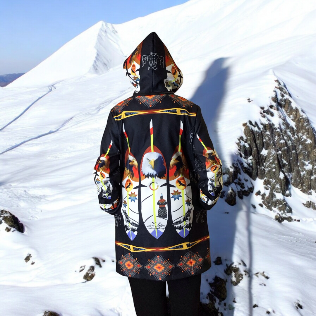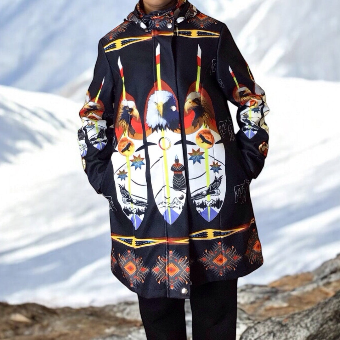 Our jackets come from Indigenous countries—Peru, Guatemala, Mexico, and Ecuador—and are 100% handmade. Our blankets are manufactured in Canada, and our beadwork is made by local artisans in Alberta.