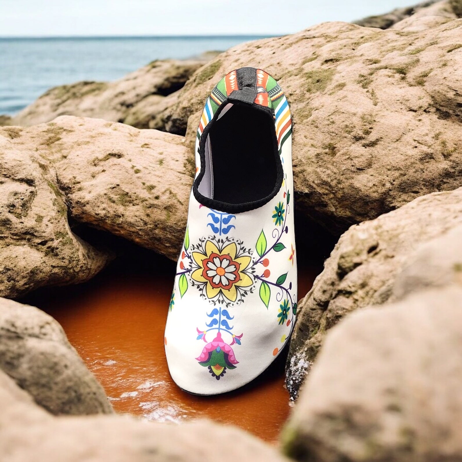 Step into comfort and style with the OLDTRIBES™ Aqua Step Collection. These artisan-crafted shoes are designed for water-bound adventures, offering a perfect blend of elegance, durability, and versatility. Featuring quick-drying materials, slip-resistant soles, and a breathable design, they provide comfort and grip on wet surfaces. Whether you're kayaking, sailing, or enjoying a beach day, the Aqua Step Collection combines performance with style.