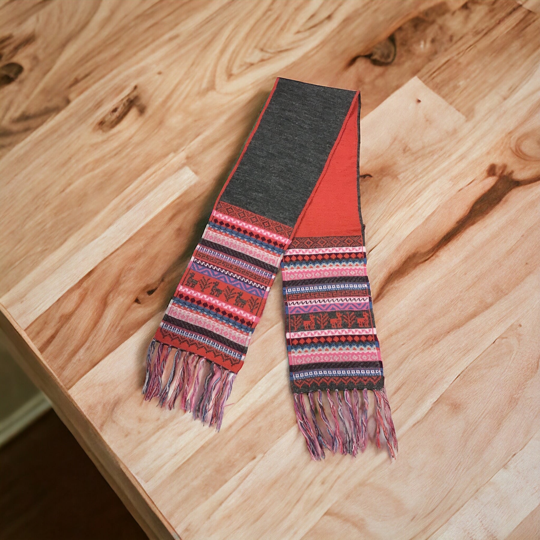Red and Greyish Black Handmade Reversible Alpaca Scarf