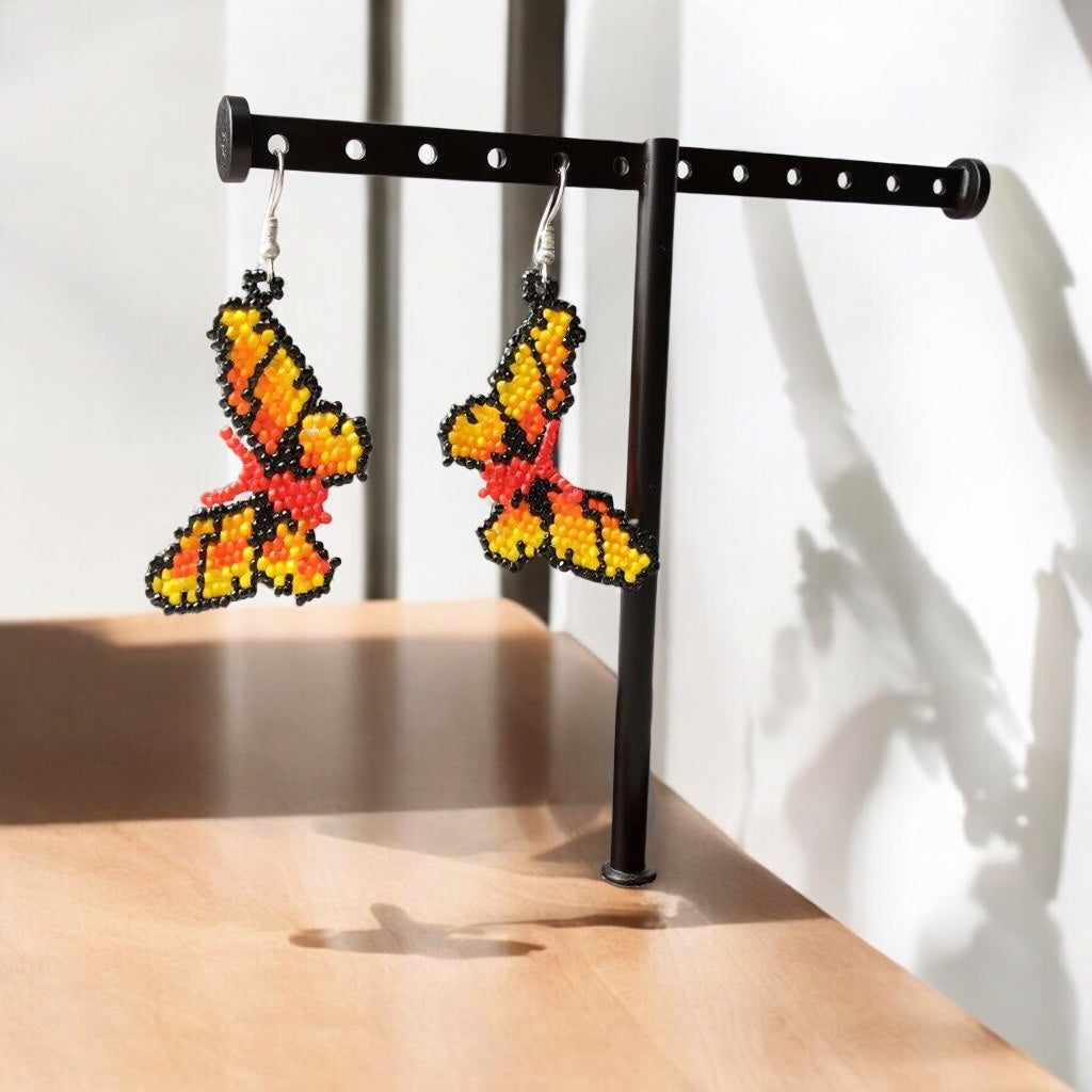 Let your style take flight with these vibrant, handcrafted butterfly earrings. Each pair is intricately woven using traditional beadwork techniques, celebrating Indigenous artistry through color and craftsmanship.