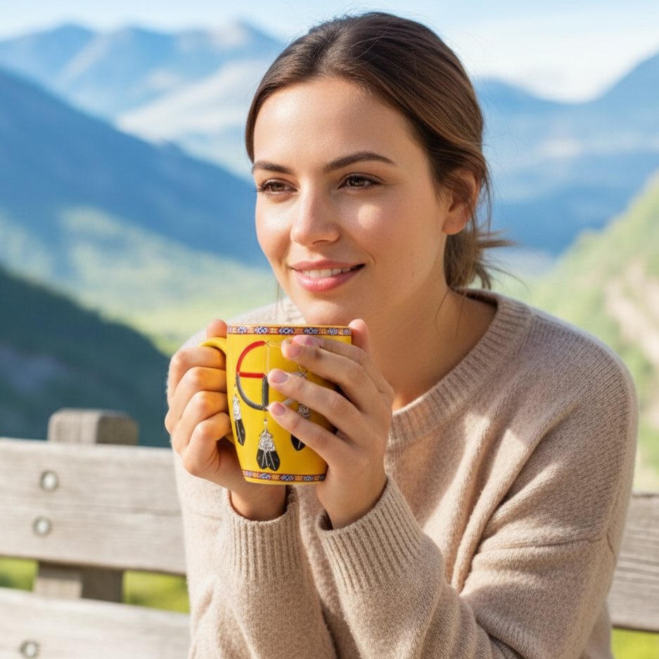 Tasse en céramique jaune Medicine Wheel de 16 oz