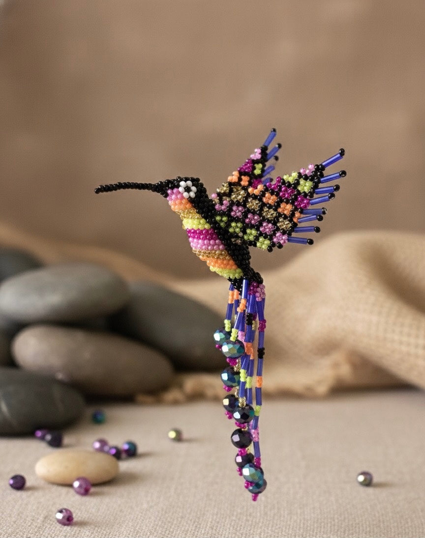 Nos vestes proviennent de pays autochtones (Pérou, Guatemala, Mexique et Équateur) et sont entièrement faites à la main. Nos couvertures sont fabriquées au Canada et nos broderies perlées sont réalisées par des artisans locaux en Alberta.