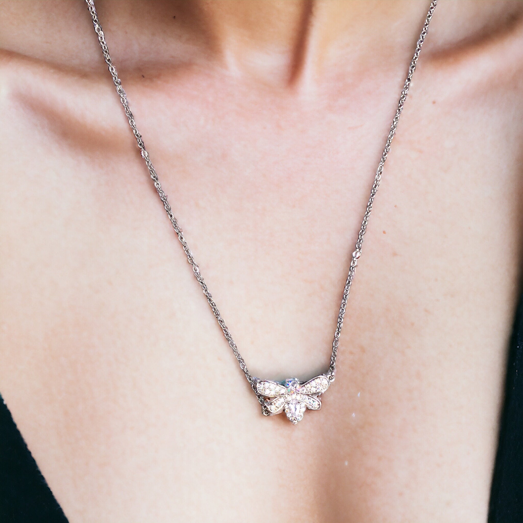 Collier pendentif papillon en acier inoxydable avec longue chaîne