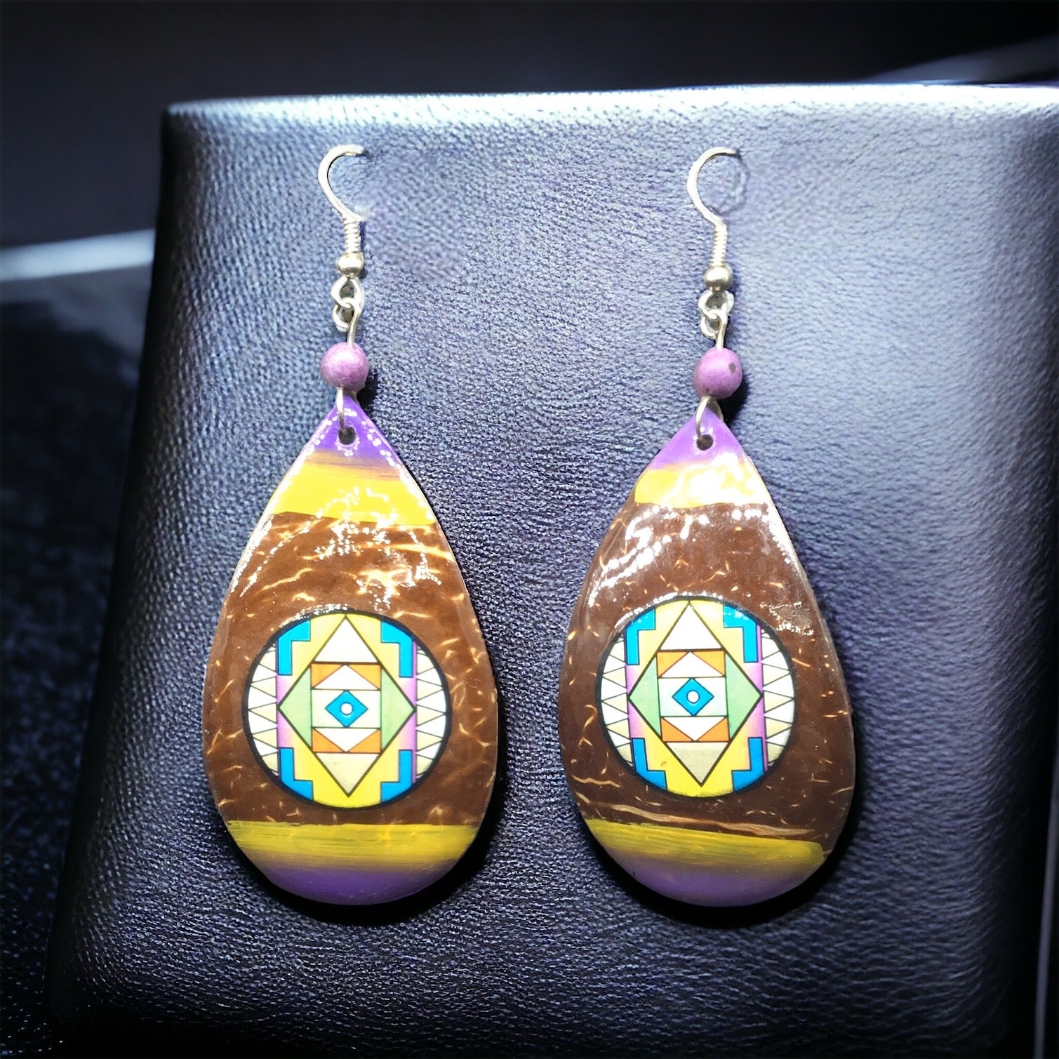 Boucles d'oreilles rondes en bois peintes en rose et violet OLDTRIBES™
