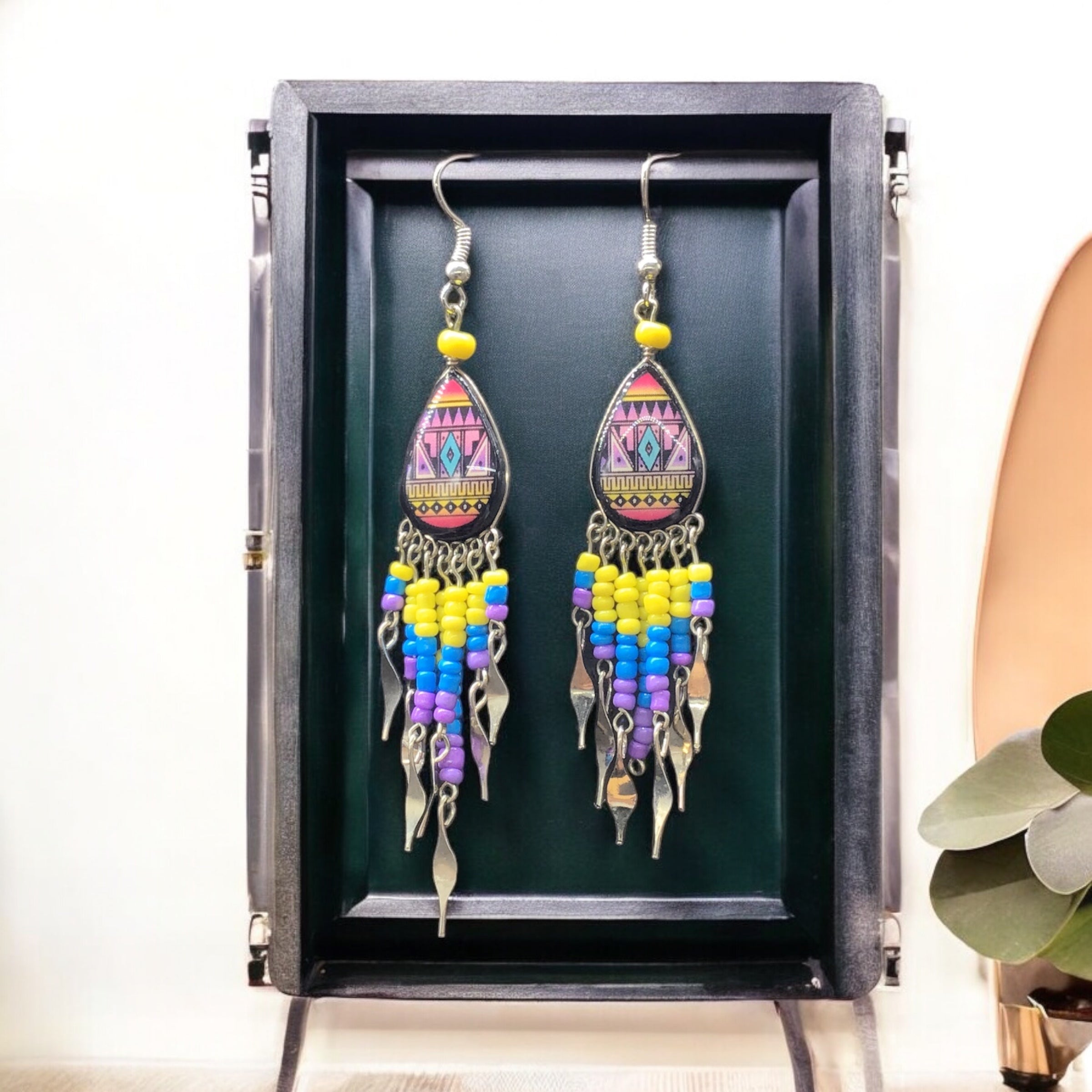 Ces magnifiques boucles d'oreilles attrape-rêves en perles sont un véritable témoignage du talent artistique et du savoir-faire de leurs créateurs. Chaque paire est méticuleusement fabriquée à la main avec le plus grand soin et une attention particulière aux détails. Le perlage complexe présente une superbe combinaison de couleurs et de motifs, faisant de ces boucles d'oreilles un accessoire unique et accrocheur.