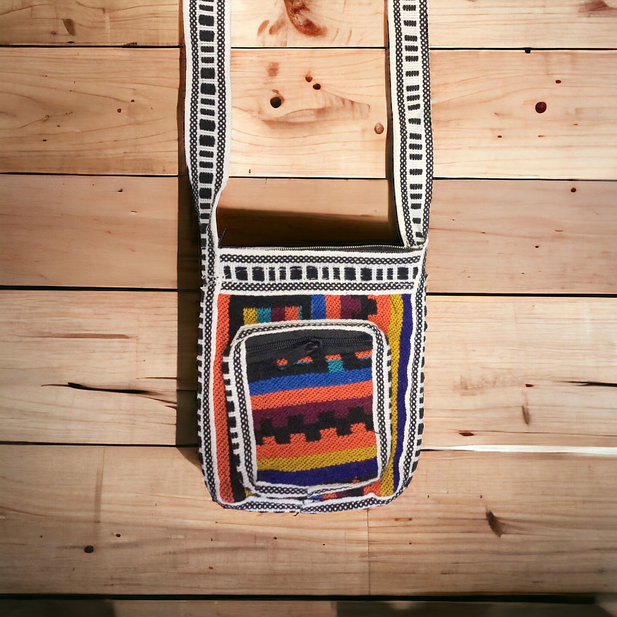 Découvrez notre superbe sac bandoulière fait main, doté d'un motif tribal vibrant qui ajoute une touche de couleur à n'importe quelle tenue. Cet accessoire élégant mesure 4,5 x 5,5 pouces, ce qui en fait la taille parfaite pour transporter vos essentiels lors de vos déplacements.