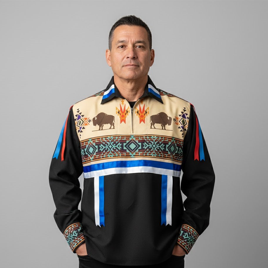 Nos vestes proviennent de pays autochtones (Pérou, Guatemala, Mexique et Équateur) et sont entièrement faites à la main. Nos couvertures sont fabriquées au Canada et nos broderies perlées sont réalisées par des artisans locaux en Alberta.