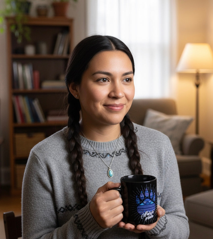 Nos vestes proviennent de pays autochtones (Pérou, Guatemala, Mexique et Équateur) et sont entièrement faites à la main. Nos couvertures sont fabriquées au Canada et nos broderies perlées sont réalisées par des artisans locaux en Alberta.