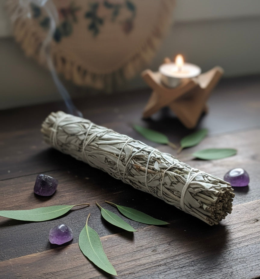 This 9-inch White Sage Smudge Stick is a generous, hand-tied bundle of California White Sage (
