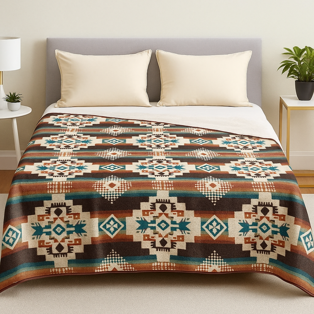 Drape your space in the warmth of tradition with our Ancestral Weave Art Blanket. This piece is not just a blanket; it's a portal to the past, featuring original weaving patterns that pay homage to the visionary designs of our ancestors. Crafted with the softest materials, it offers a luxurious touch, making it a perfect addition to your bed, sofa, or as a cozy companion for your travels.
