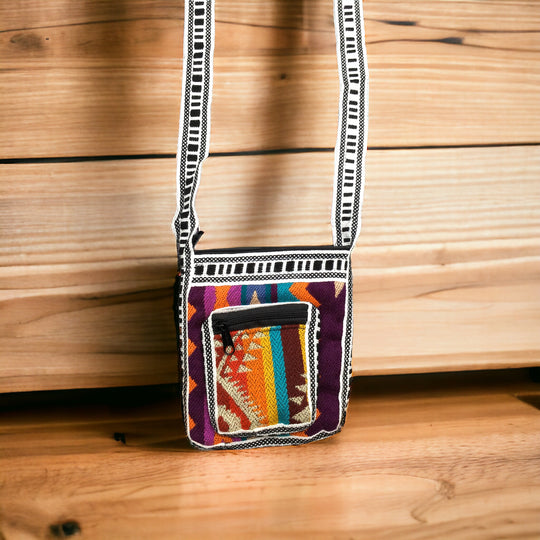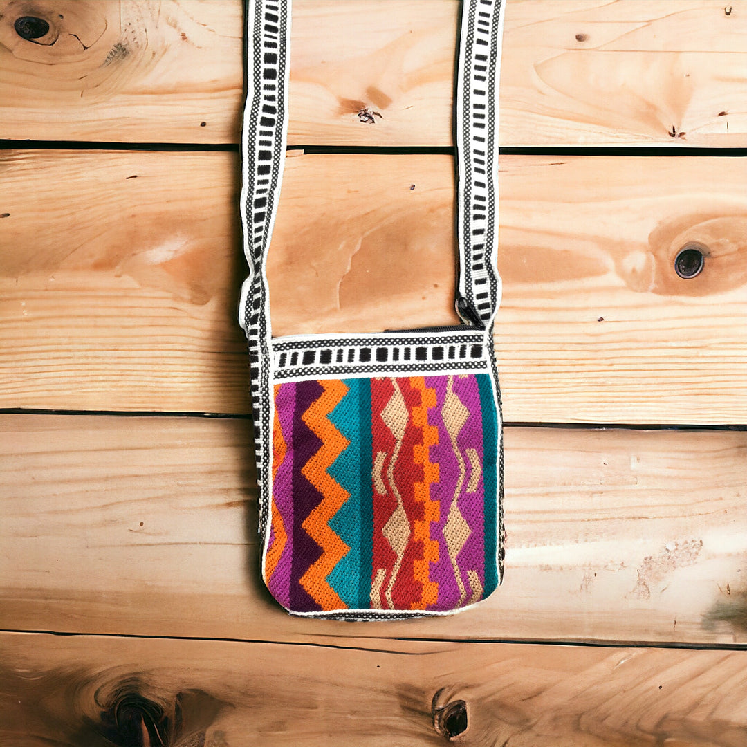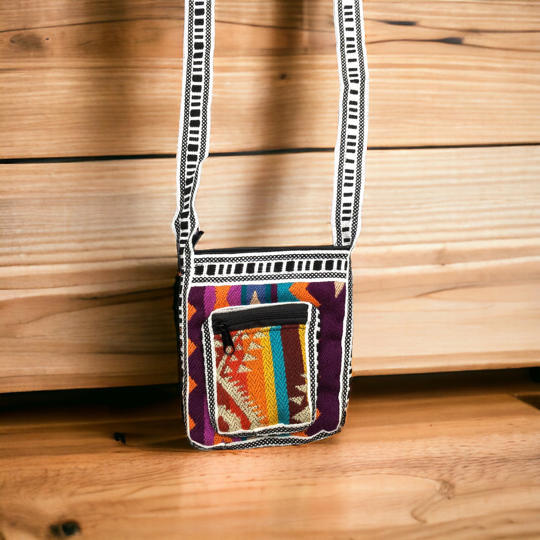 Découvrez notre sac bandoulière fait main, un petit sac à main au motif coloré qui ajoute une touche dynamique à n'importe quelle tenue. Cet accessoire élégant mesure 4 x 5 pouces, ce qui en fait la taille parfaite pour transporter vos essentiels lors de vos déplacements.