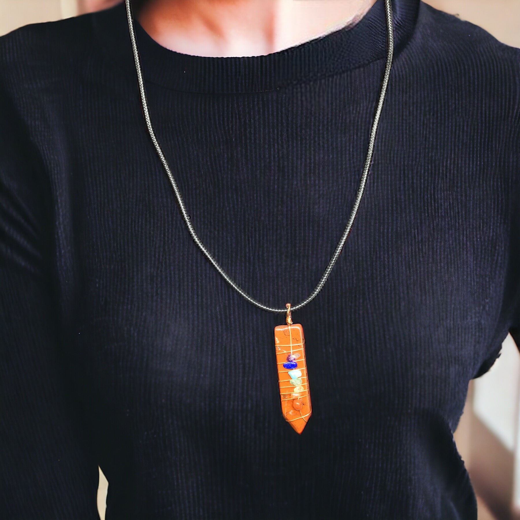 Ce pendentif unisexe présente un design unique inspiré du concept du chakra de l'épée. Fabriqué à partir de pierre naturelle, il dégage un sentiment d'élégance terrestre et de signification spirituelle.