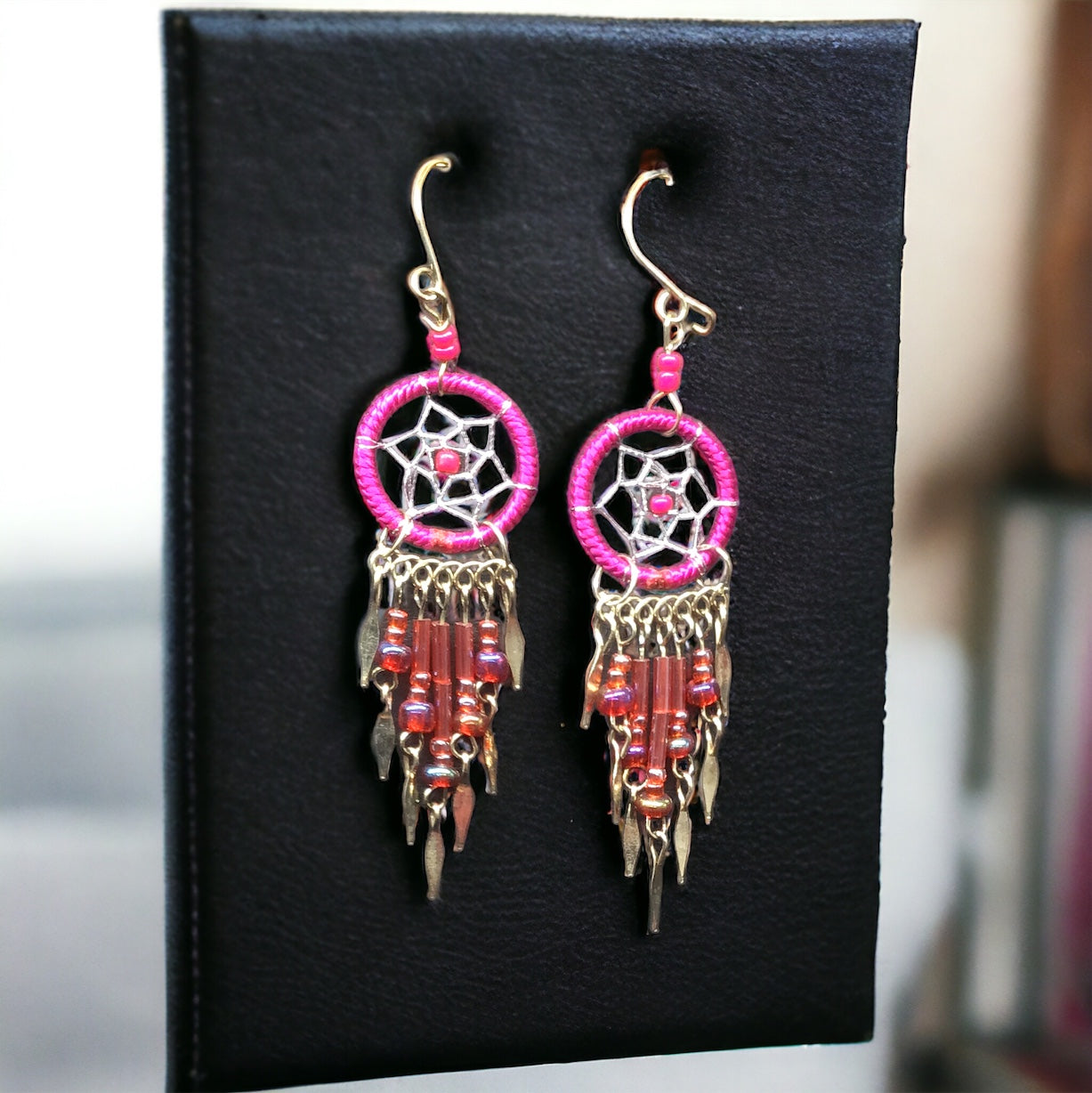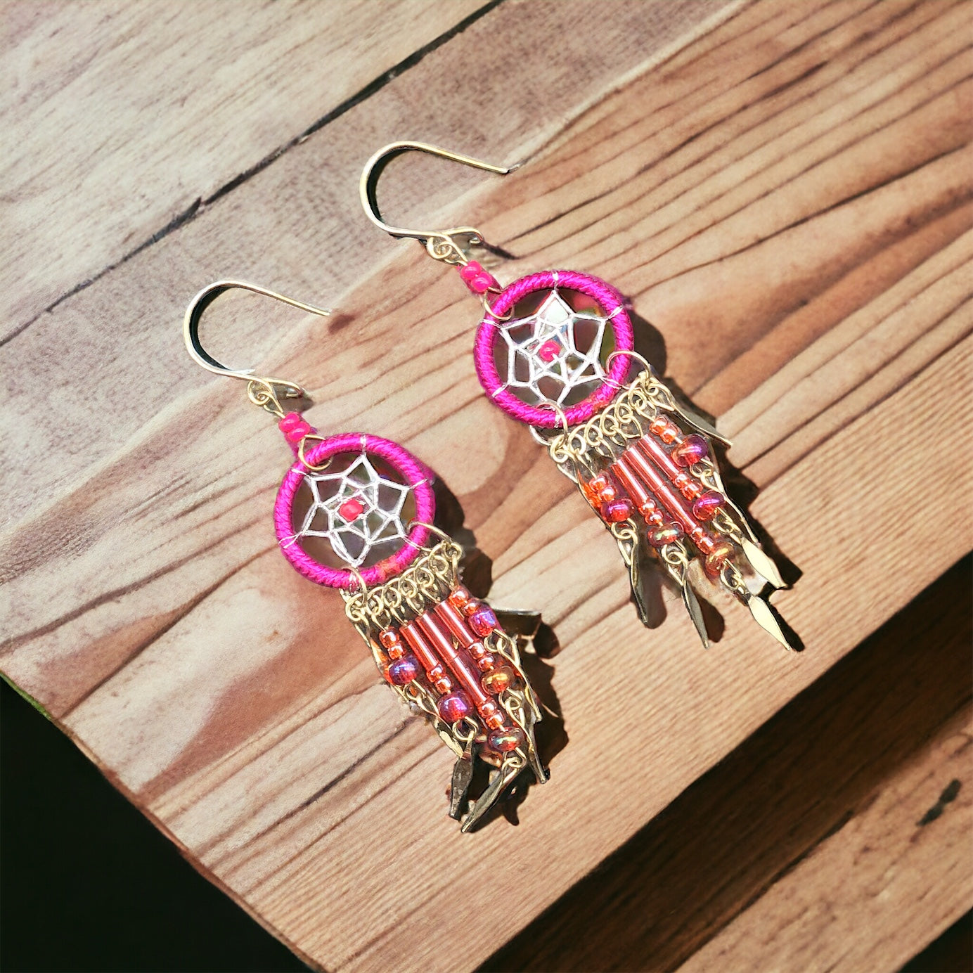 Boucles d'oreilles Dreamcatcher rose fuchsia OLDTRIBES™
