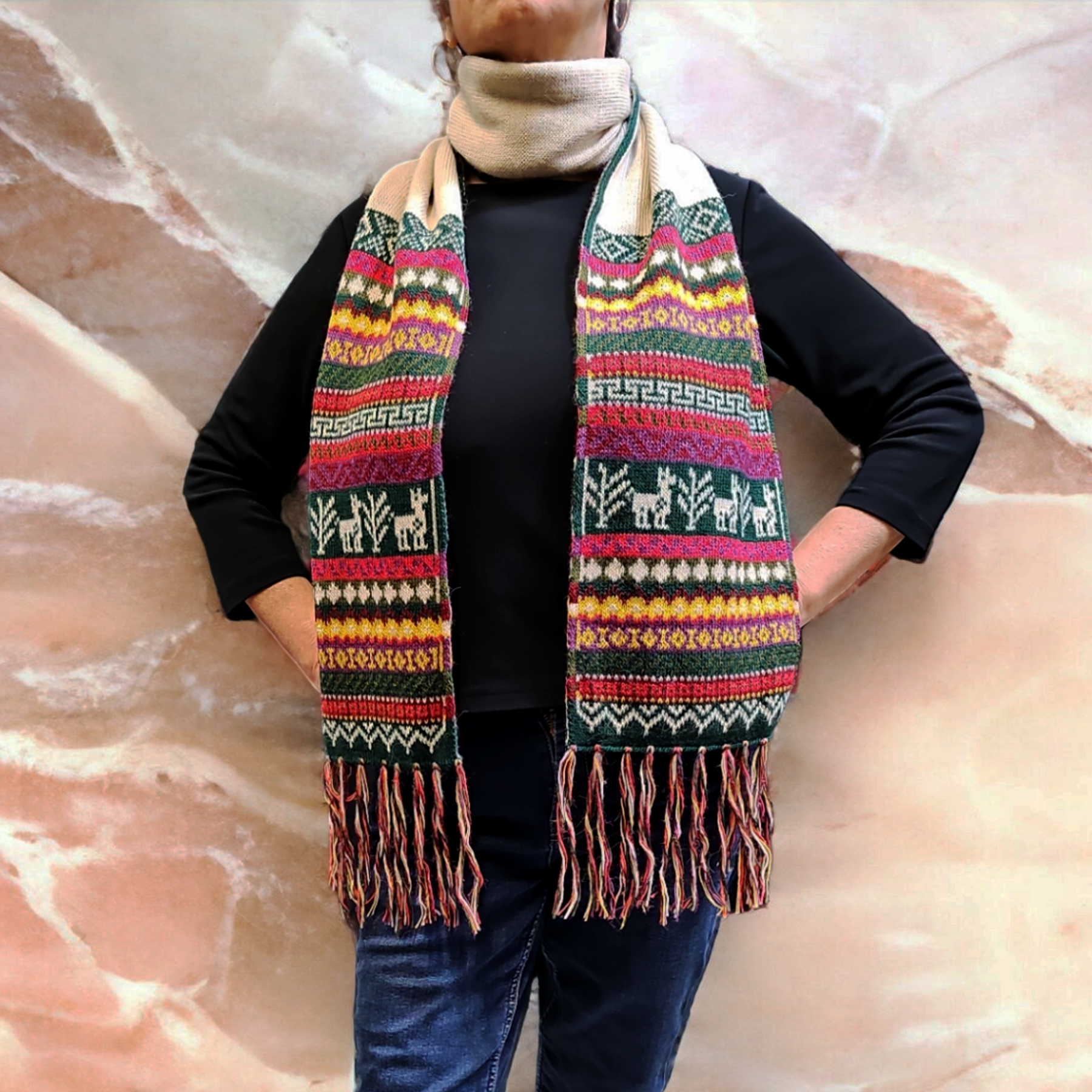 Looking for a meaningful gift that will make you feel special? Our warm baby alpaca wool scarves are the perfect choice. Made from certified pure alpaca wool, these scarves are not only high-quality but also reversible, offering you a variety of colors to choose from. With careful weaving, they provide maximum softness and durability, ensuring they will keep you warm all winter season. Each scarf is finished with a 3" hand-rolled fringe, adding a touch of elegance to your outfit.