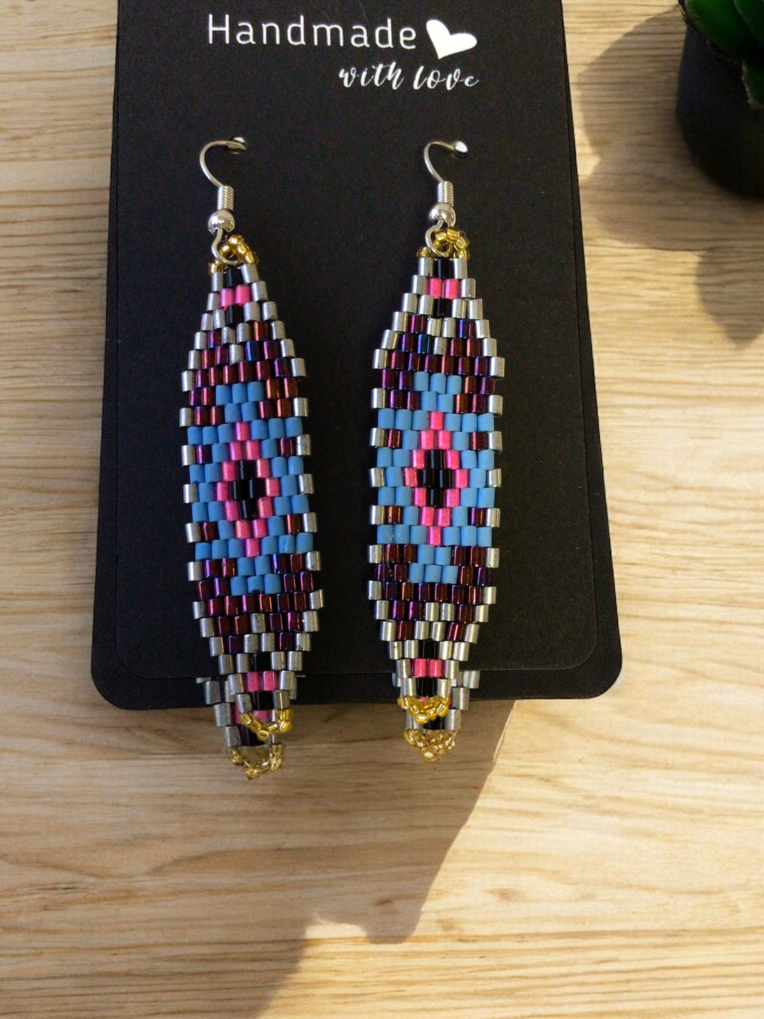 Elevate your style with these exquisite Miyuki glass beaded earrings, which showcase the beauty and elegance of traditional beadwork. Whether you're looking for a statement piece or a subtle touch of sophistication, these earrings are sure to add a touch of glamour to any outfit. Experience the allure of Miyuki glass beads with these unique and eye-catching earrings.