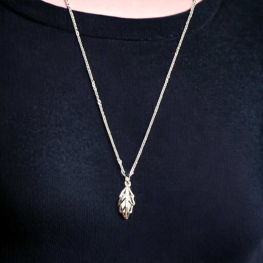 Feather Stainless Steel Necklace Pendants With Long Chain
