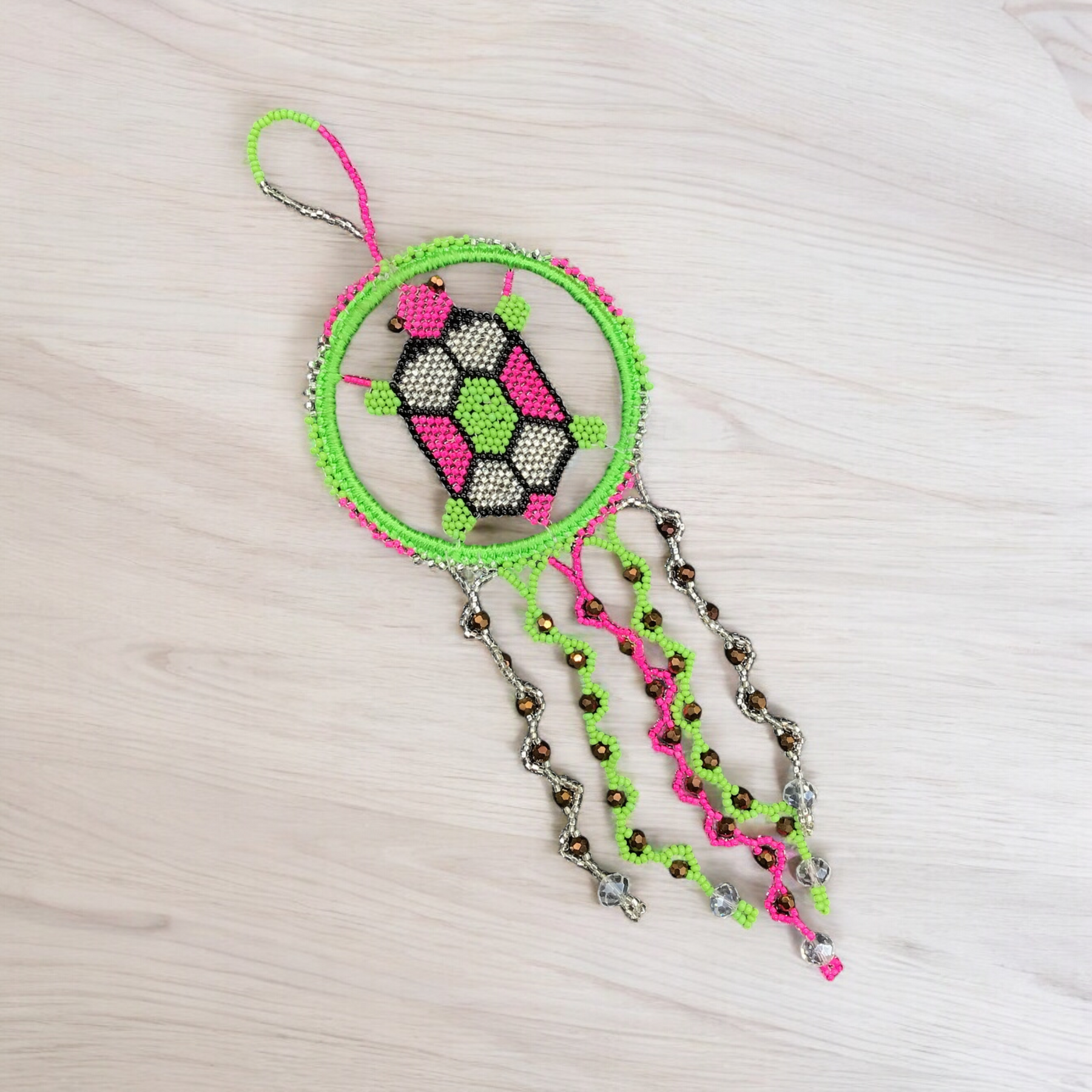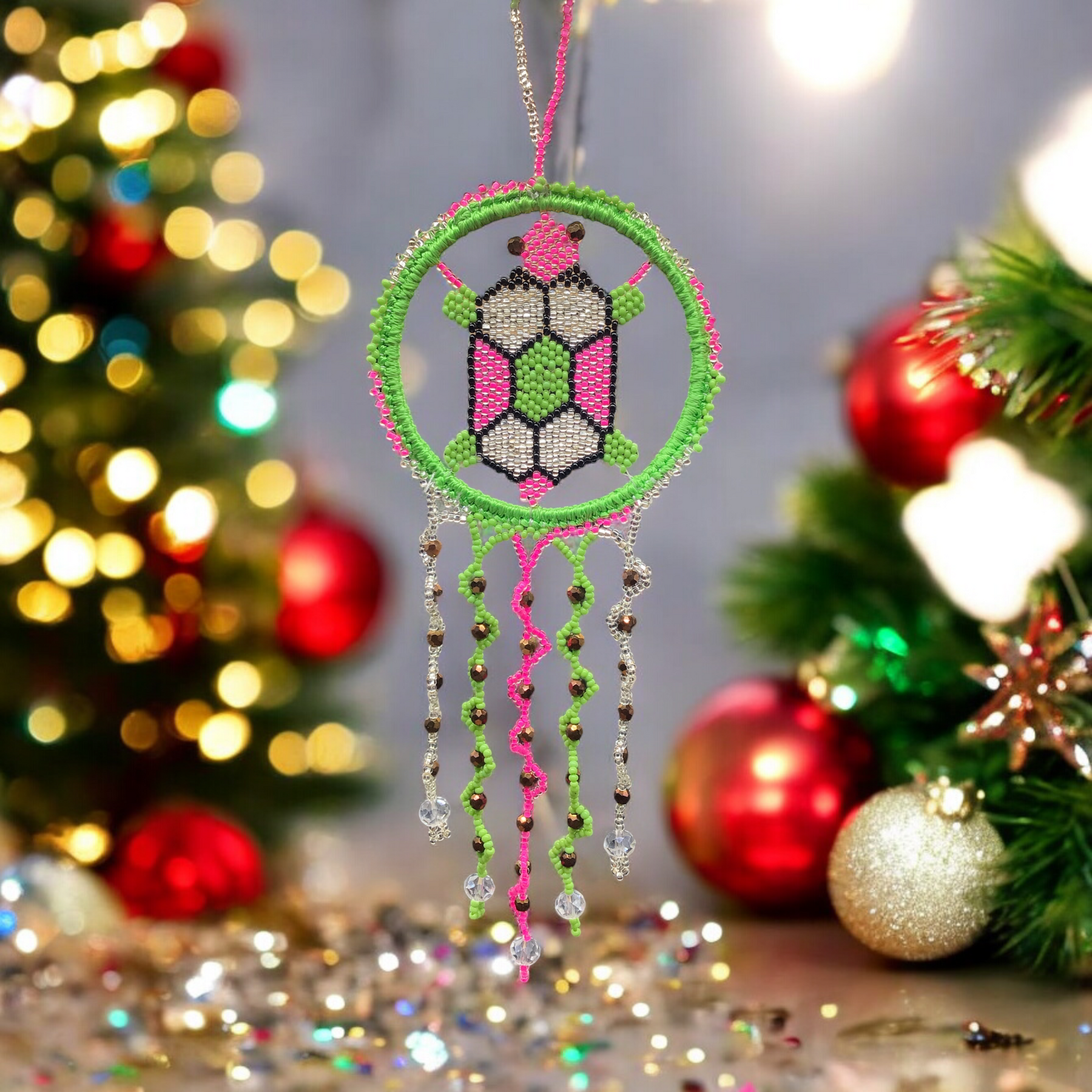 Green and Pink Beaded Turtle Ornament
