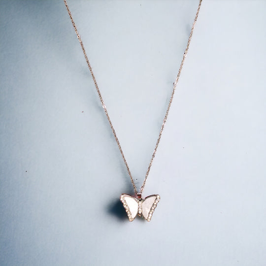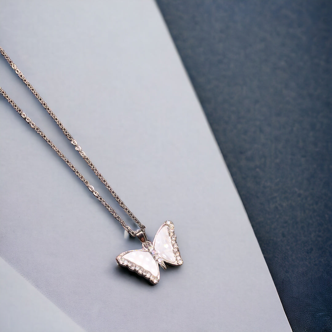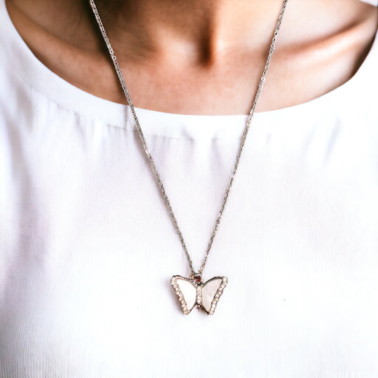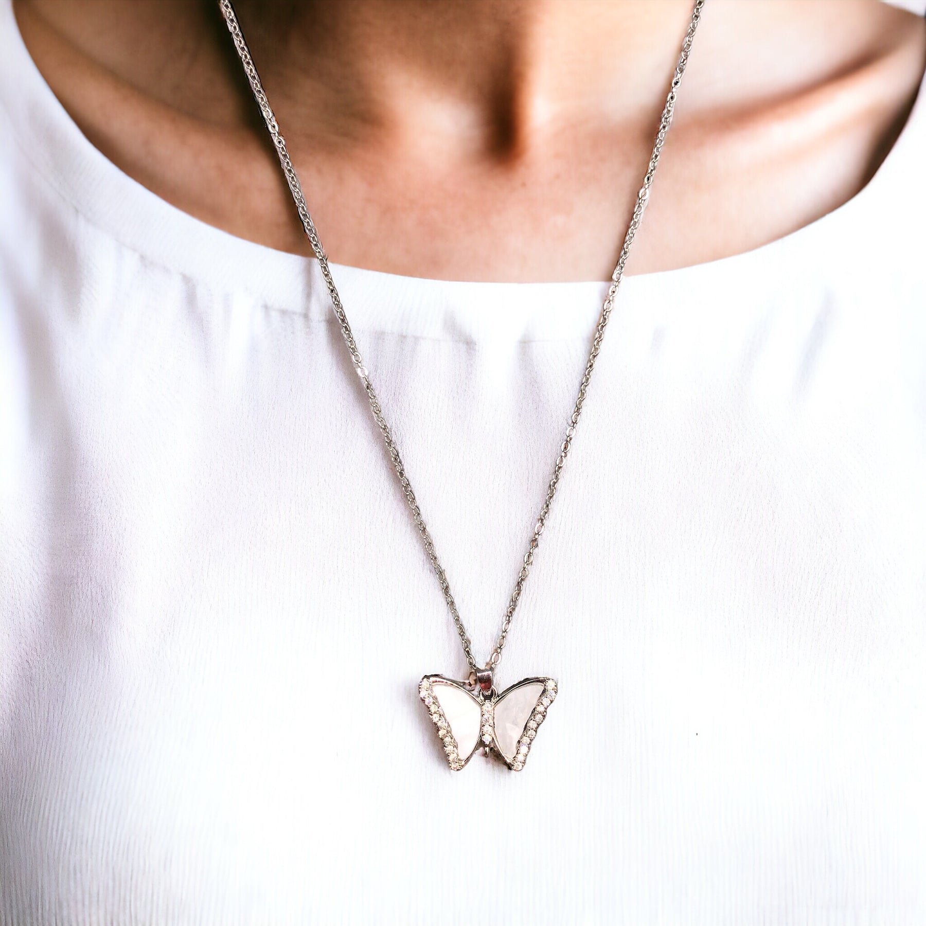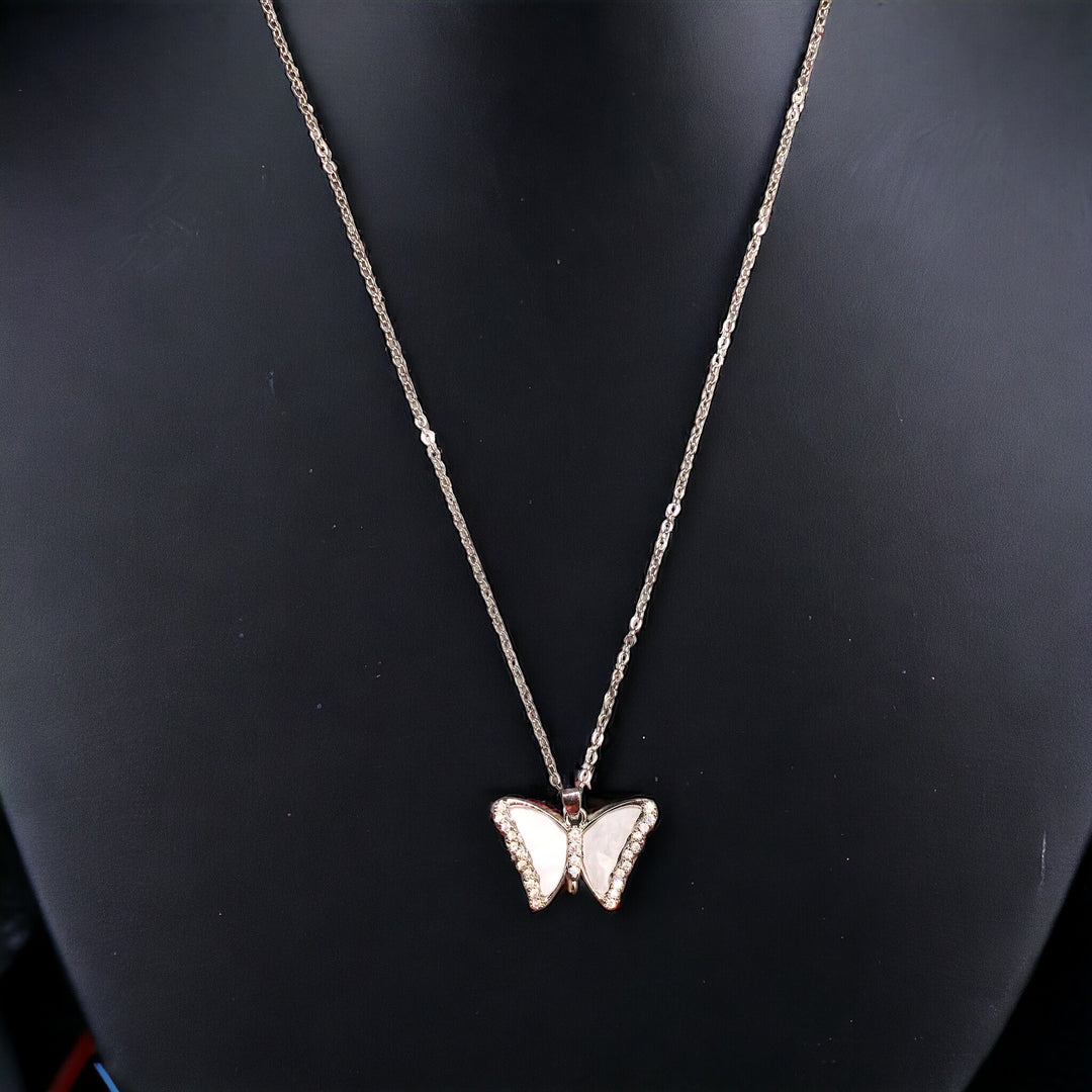 White Butterfly Stainless Steel Necklace Pendants With Long Chain