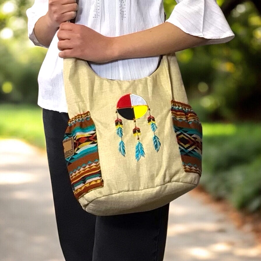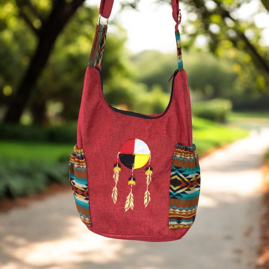 This beautiful embroidered crossbody bag is 100% handmade by Indigenous artisans, blending traditional craftsmanship with everyday functionality. Designed in Canada, it features intricate embroidery that celebrates cultural heritage and skilled artistry. The bag includes an adjustable strap for a comfortable fit, whether worn over the shoulder or across the body — perfect for carrying your essentials in style.
