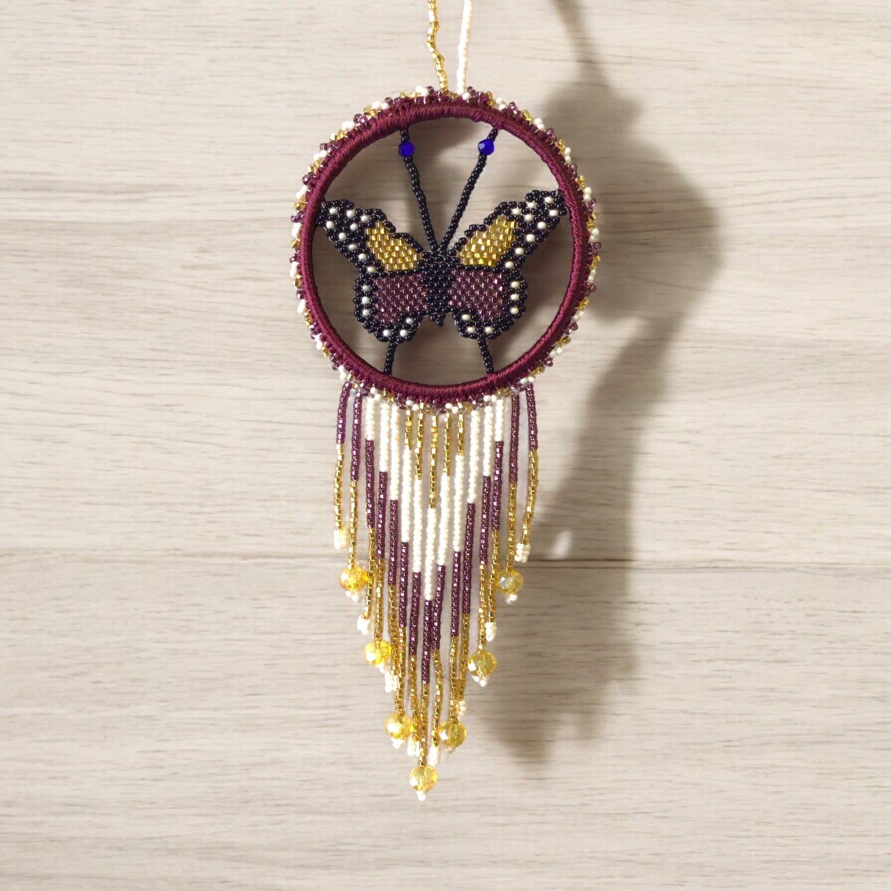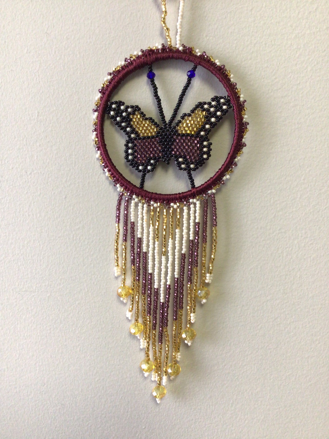 These elegant Purple Accent Butterfly decor are a perfect accessory to decorate any car, wall, or bathroom stall! It is artistically handmade, adding vibrancy to even the plainest of surfaces. Adorn your home with this beautiful handmade purple accent dream catcher. Crafted with beaded loops, this elegant piece is sure to be a perfect gift for any occasion! Show your loved ones the captivating art of a unique dream catcher butterflies or treat yourself to one-of-a-kind modern art.