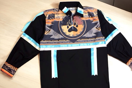 Our jackets come from Indigenous countries—Peru, Guatemala, Mexico, and Ecuador—and are 100% handmade. Our blankets are manufactured in Canada, and our beadwork is made by local artisans in Alberta.