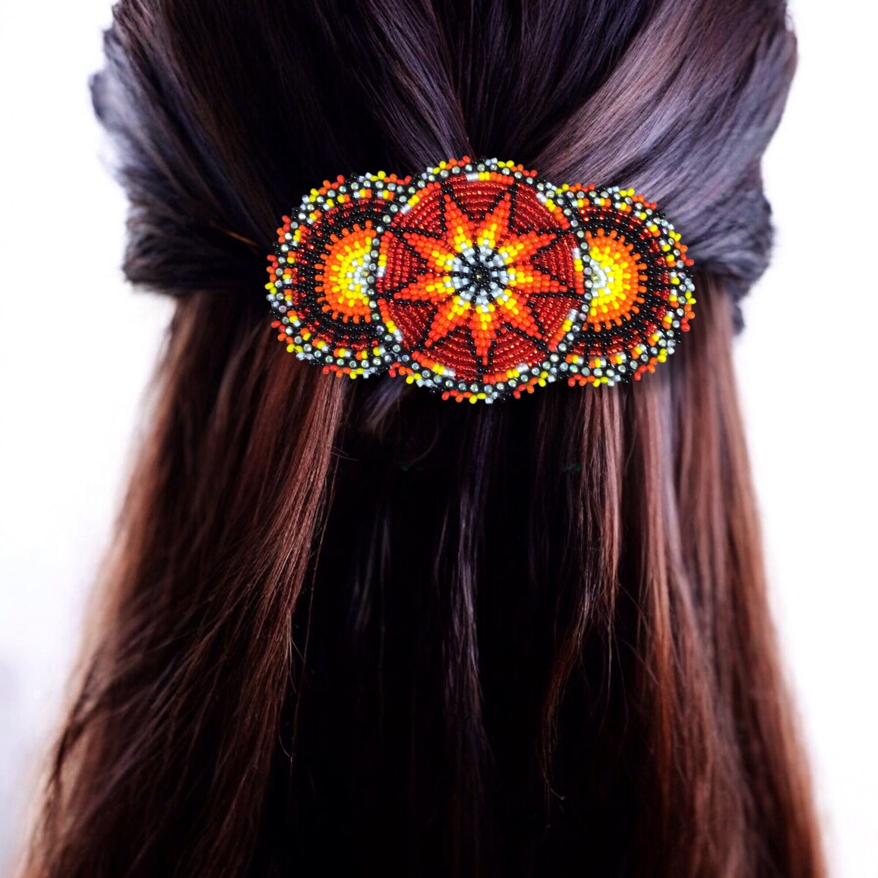 Celebrate heritage and artistry with these beautifully handcrafted Native American beaded barrettes. Perfect for adding a meaningful accent to your hairstyle, each piece carries the spirit of traditional craftsmanship.