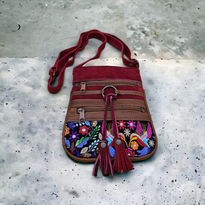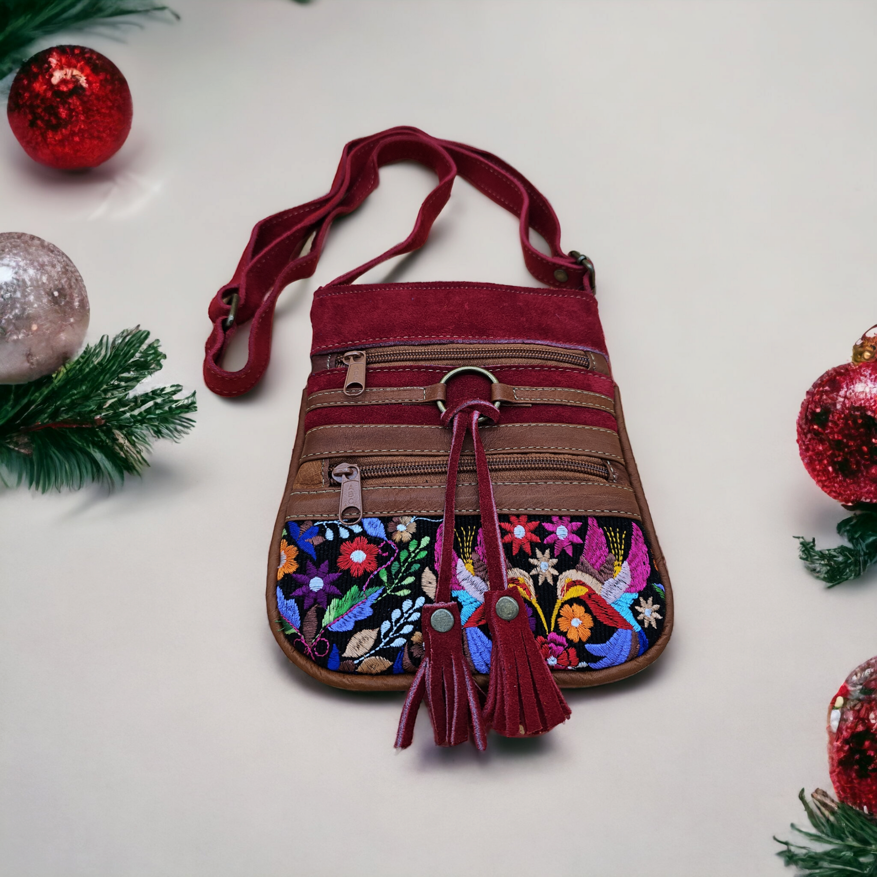 Leather Embroidery Crossbody Purse ( 7X7 INCH ) (red)