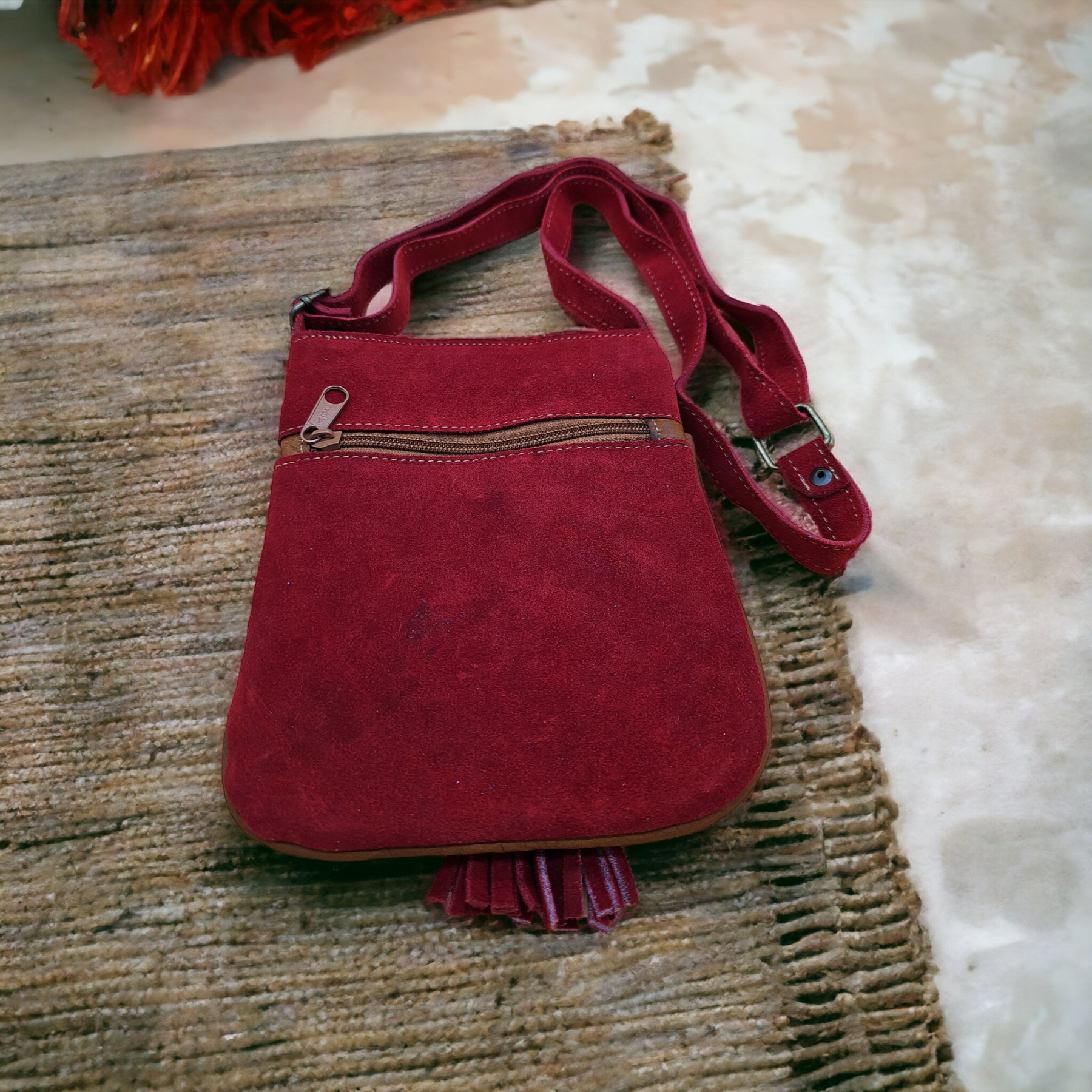 Leather Embroidery  Crossbody Purse ( 7X7 INCH ) (red)