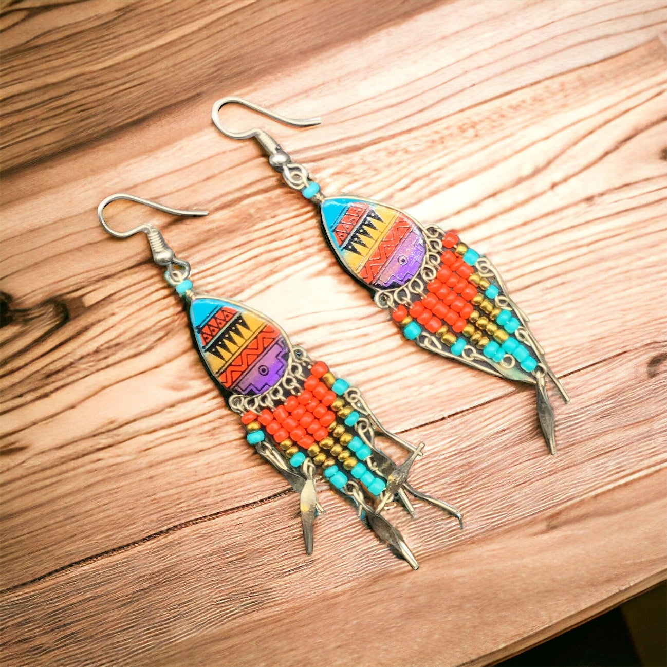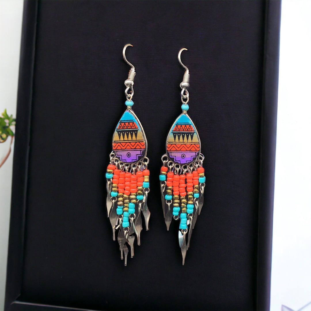 OldTribes™ Small Sized Southwestern Red and Turquoise Teardrop Earrings