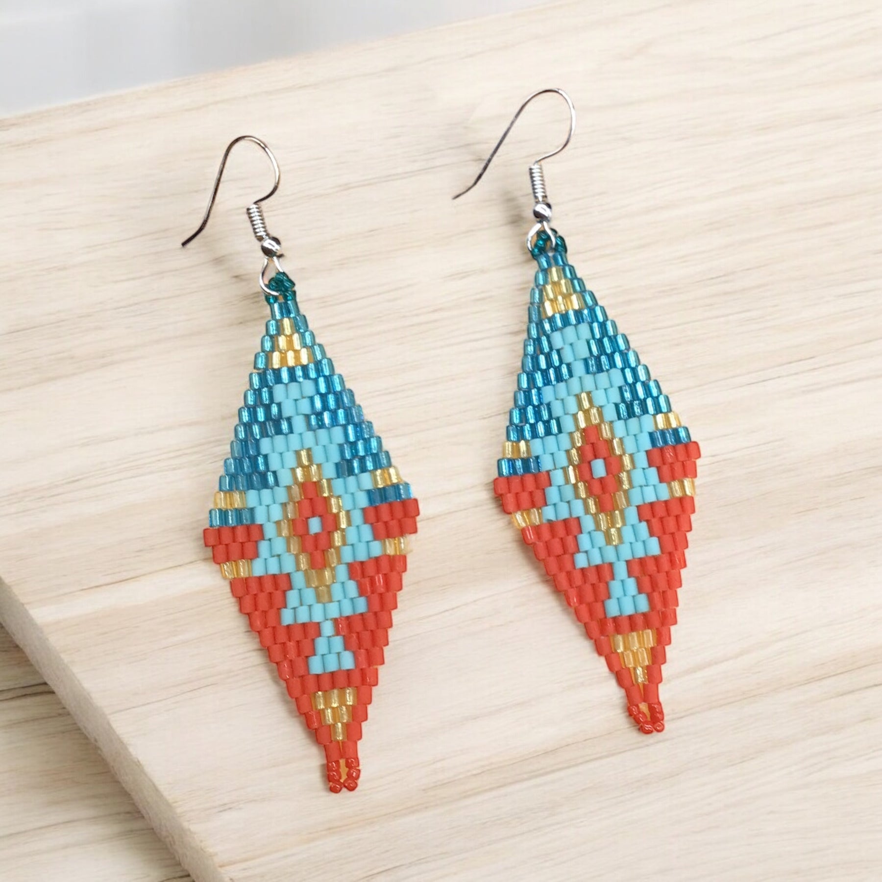These Miyuki glass beaded earrings are crafted using world-renowned Miyuki glass beads, known for their exceptional quality, stunning brilliance, and consistent shape. Perfect for fashion designers, artists, and bead enthusiasts, these earrings are a must-have accessory for those who appreciate native beaded craftsmanship.