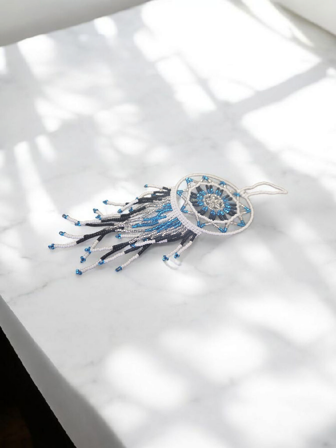White blue ,Celestial Beaded Handmade Dreamcatcher