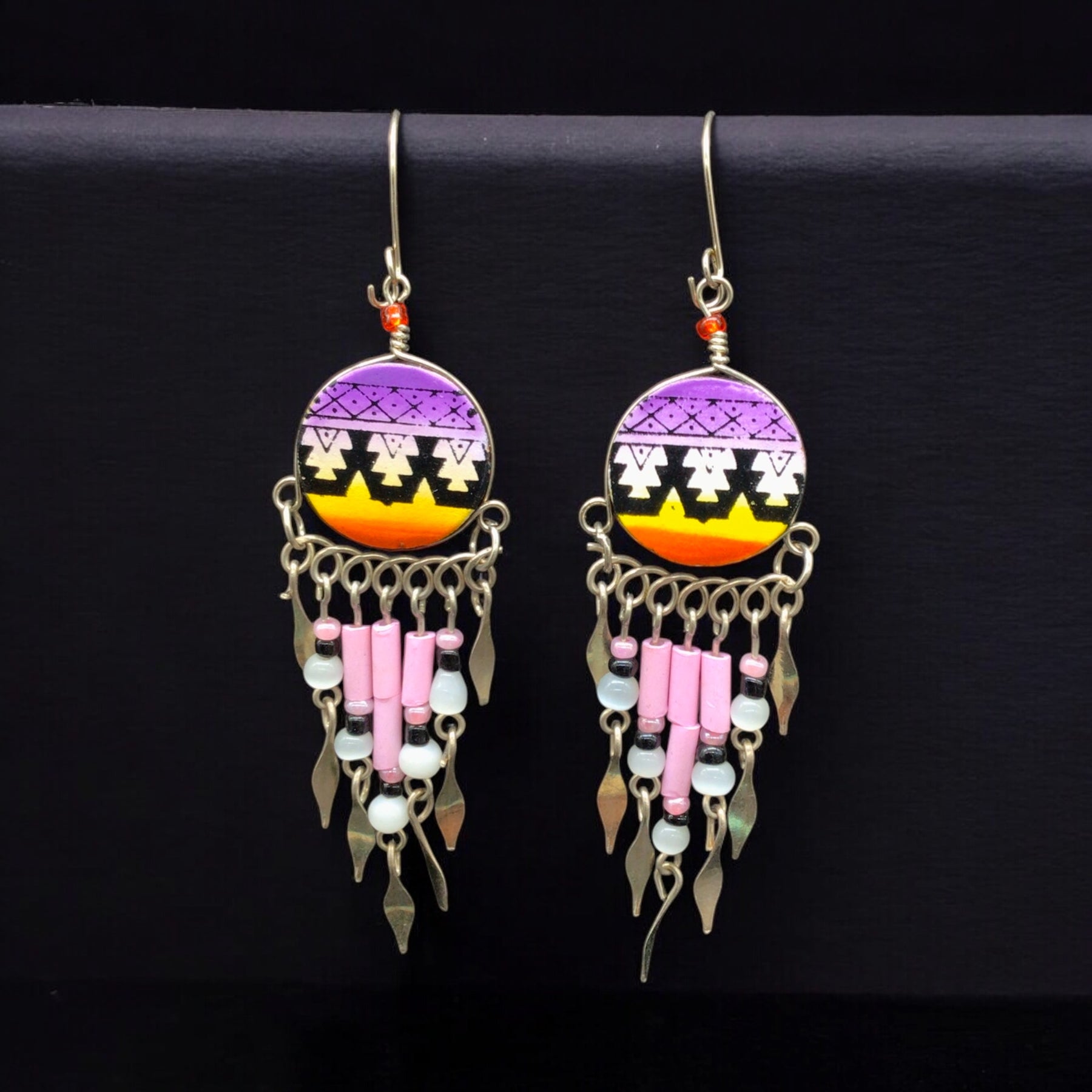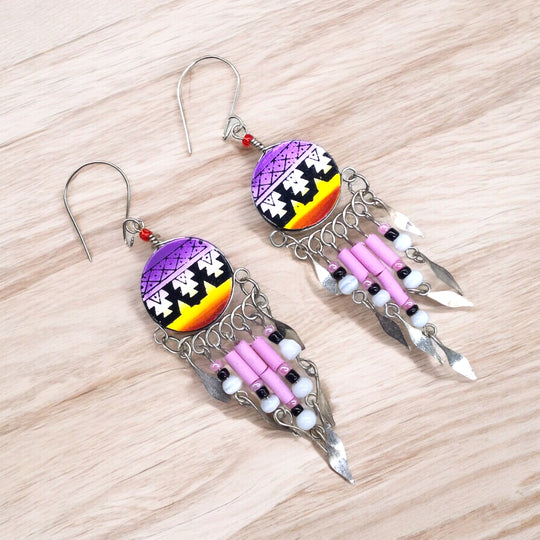 Purple and Yellow Southwestern Round Shaped Dangle Earrings