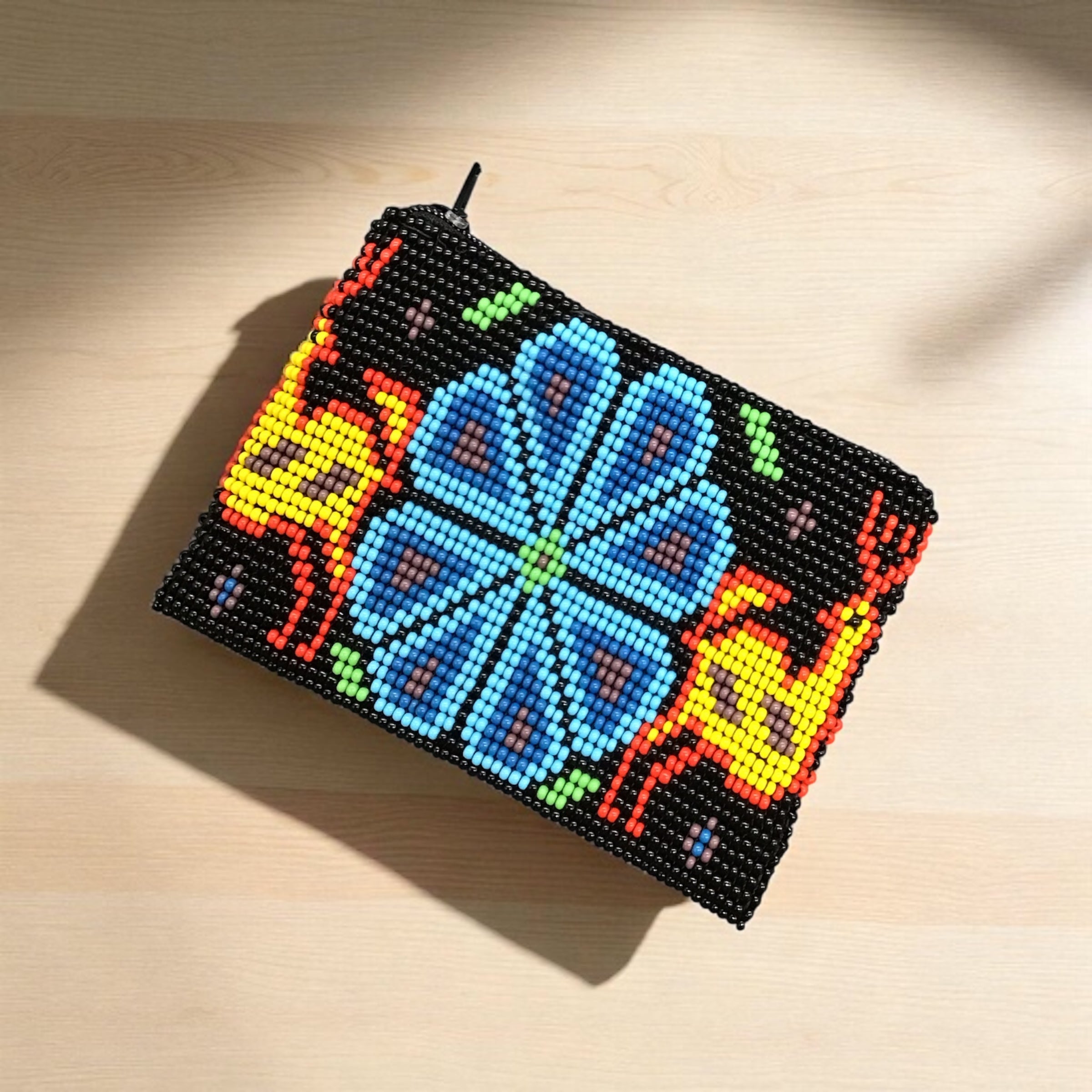 Design: Hand-beaded butterfly with intricate floral wing patterns