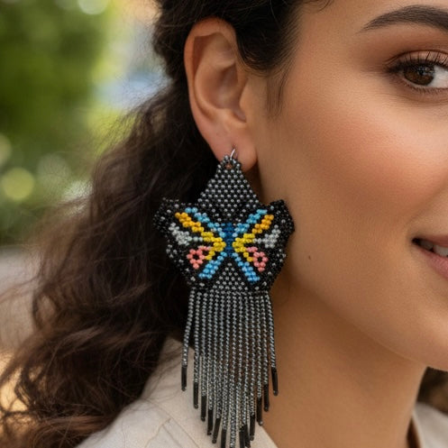Black Beaded Dancing Wing Earrings