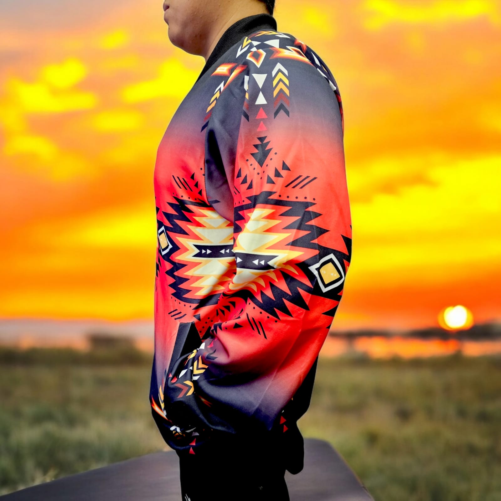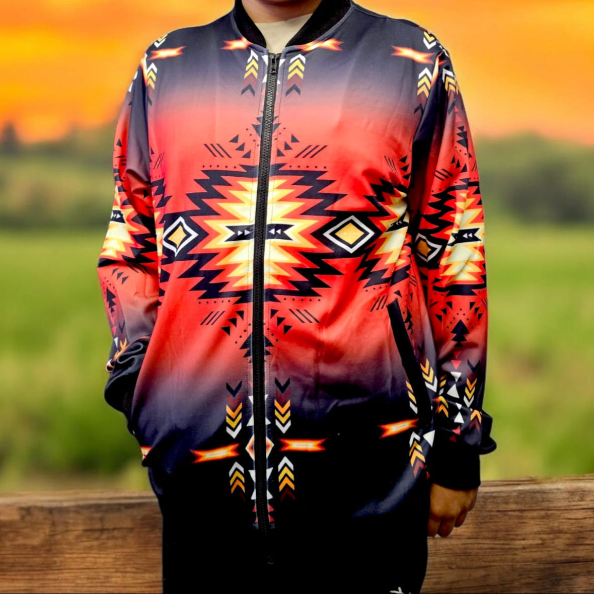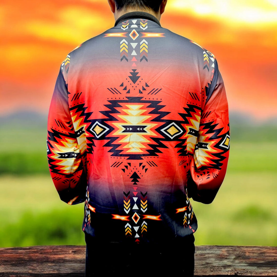 Complete with a sleek zipper closure and carefully tailored fit, the jackets are versatile enough for every occasion—whether you’re heading to a casual outing, a formal event, or a seasonal adventure. Each piece in this collection is a celebration of resilience, unity, and the enduring beauty of Indigenous craftsmanship.