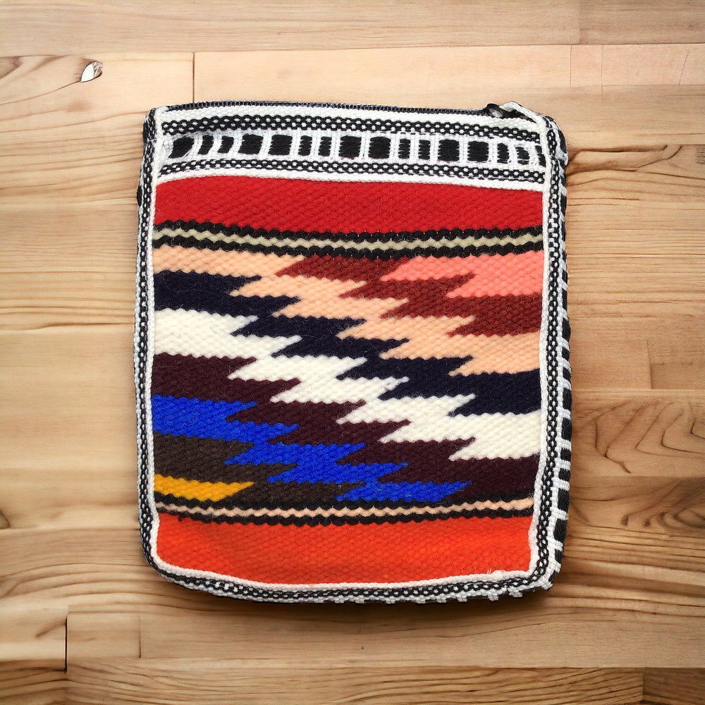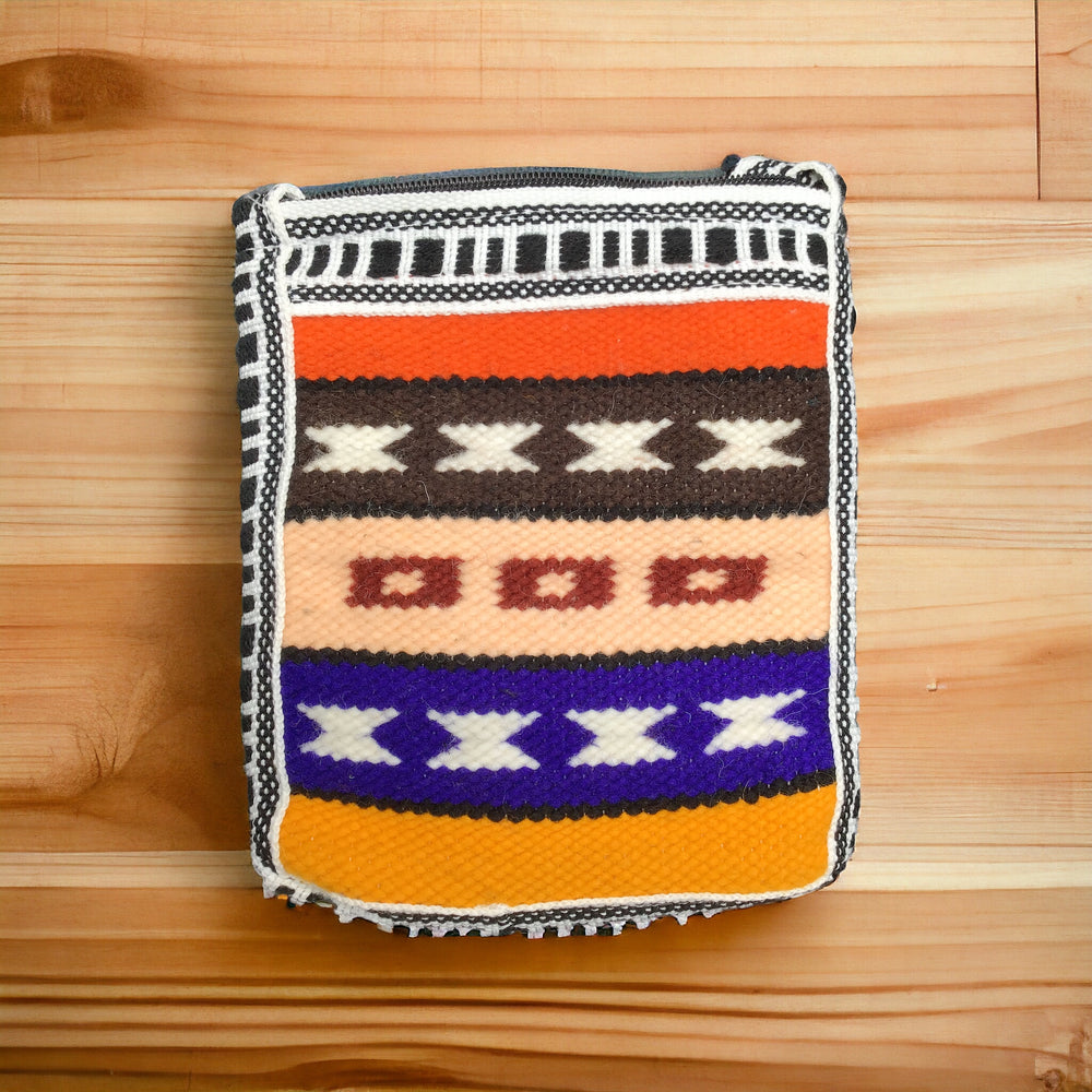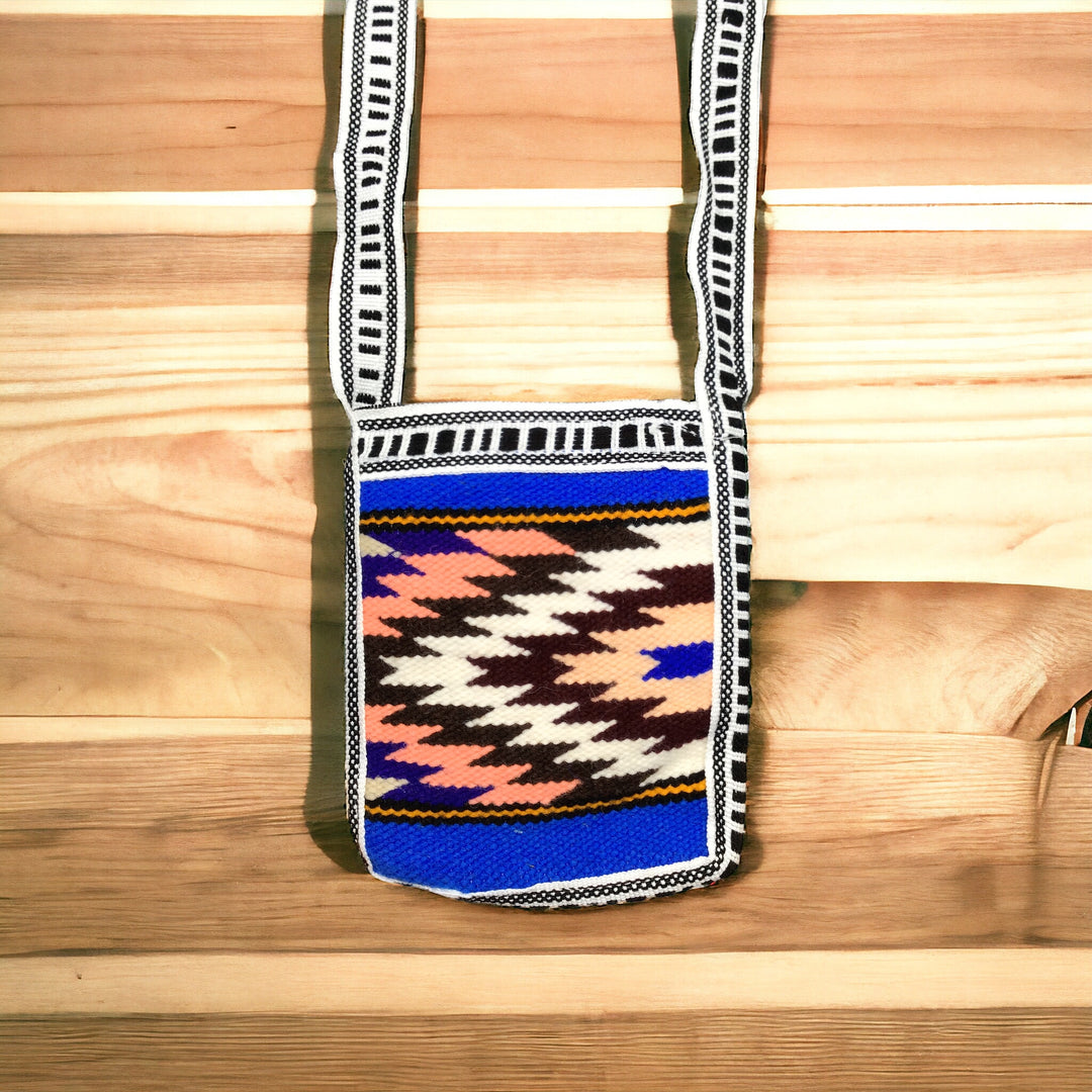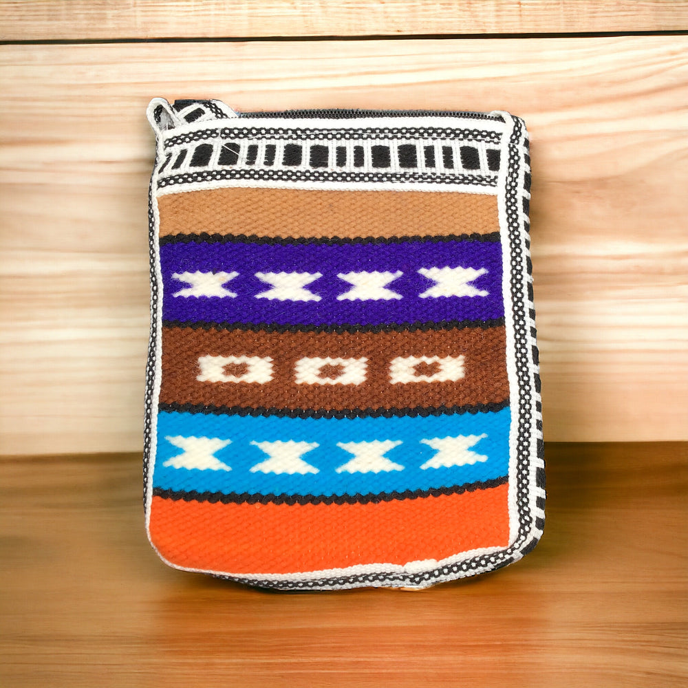 Introducing our exquisite handmade crossbody bag, featuring a vibrant tribal pattern that adds a pop of color to any outfit. This stylish accessory measures 4.5 by 5.5 inches, making it the perfect size to carry your essentials while on the go.
