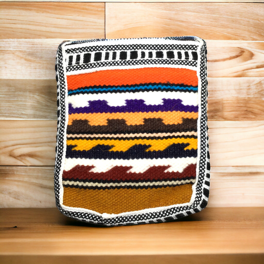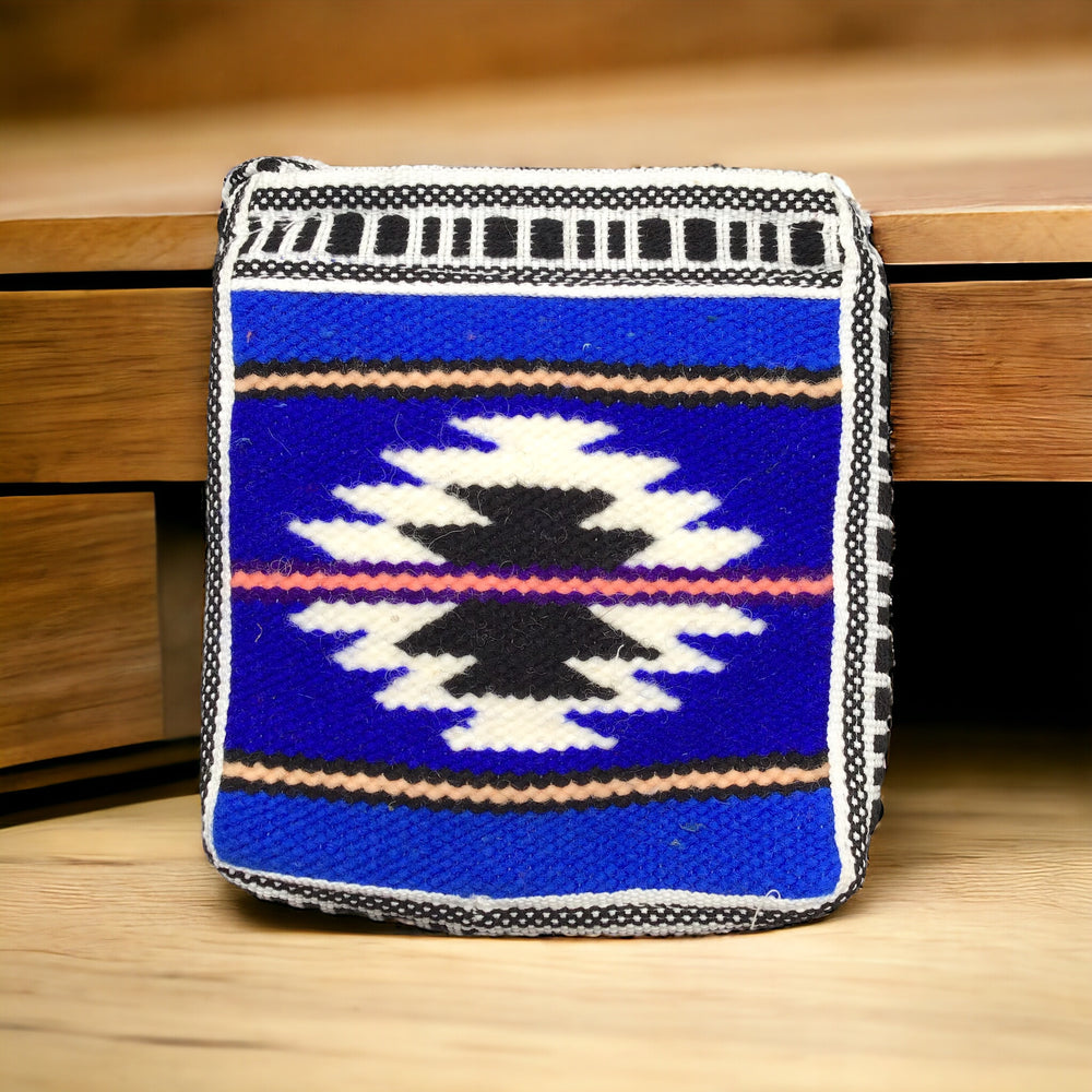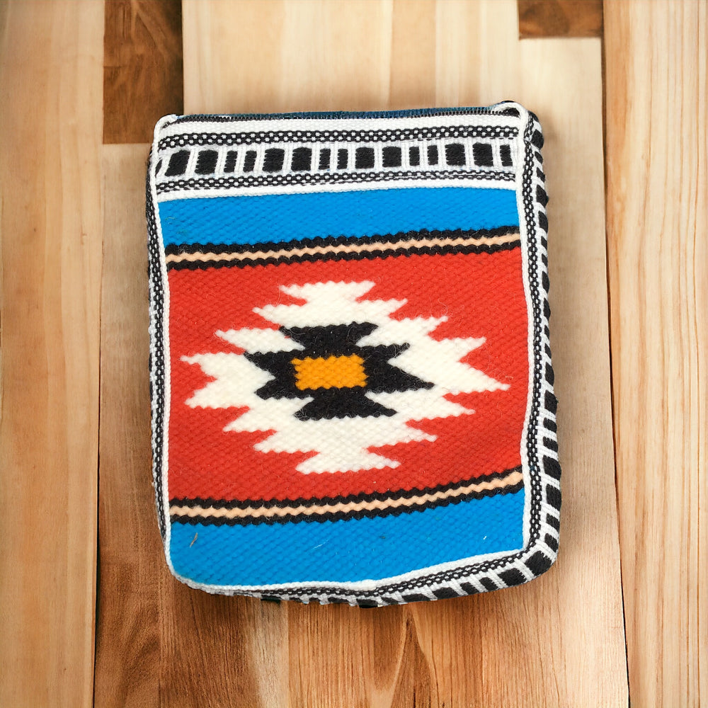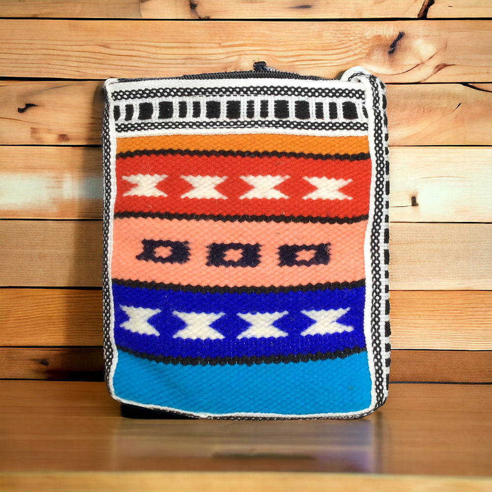Introducing our exquisite handmade crossbody bag, featuring a vibrant tribal pattern that adds a pop of color to any outfit. This stylish accessory measures 4.5 by 5.5 inches, making it the perfect size to carry your essentials while on the go.