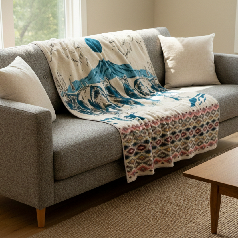 Our jackets come from Indigenous countries—Peru, Guatemala, Mexico, and Ecuador—and are 100% handmade. Our blankets are manufactured in Canada, and our beadwork is made by local artisans in Alberta.