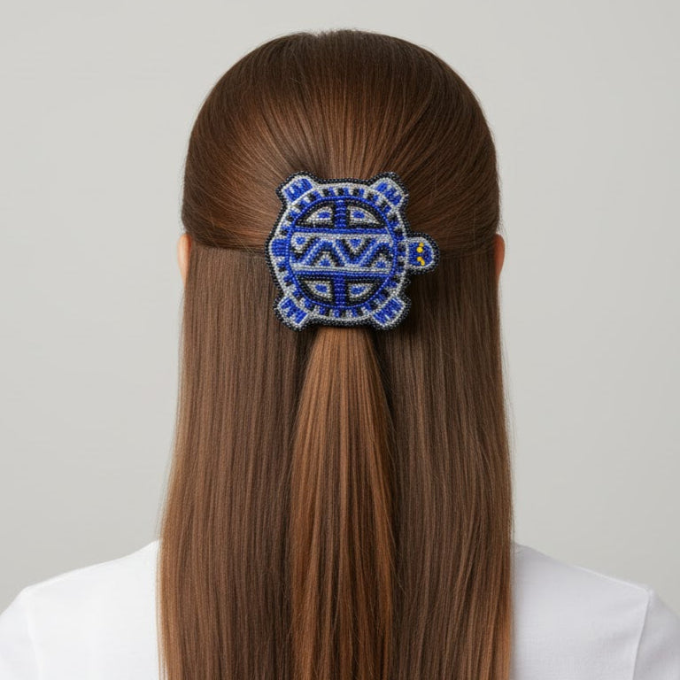 Discover our Turtle Beaded Barrettes - each one crafted by hand with love. They're not too big, just 9 cm wide and 4 cm long, making them perfect for any hair type. Whether your hair is thick or thin, these barrettes are made to fit comfortably and stay in place.