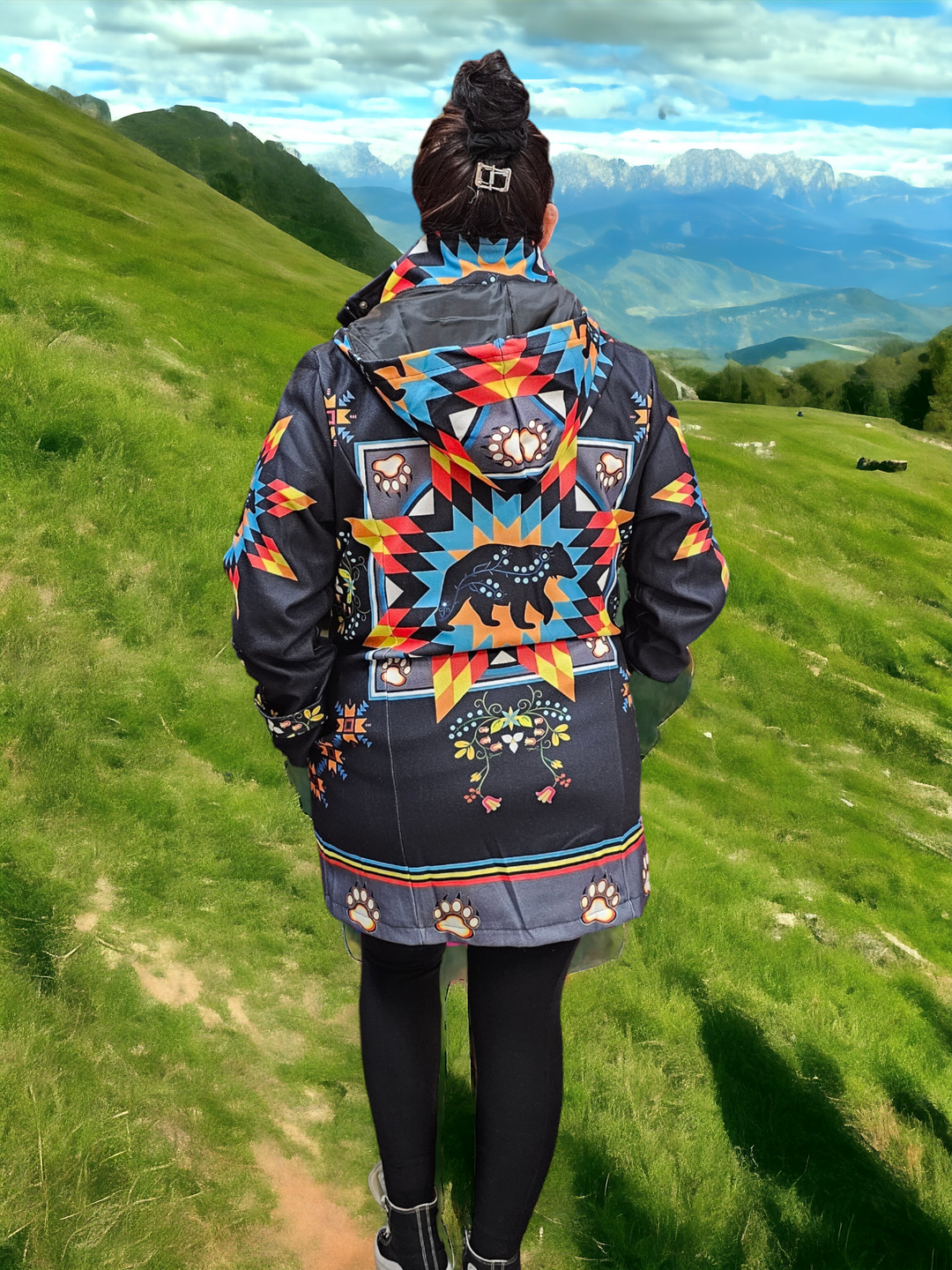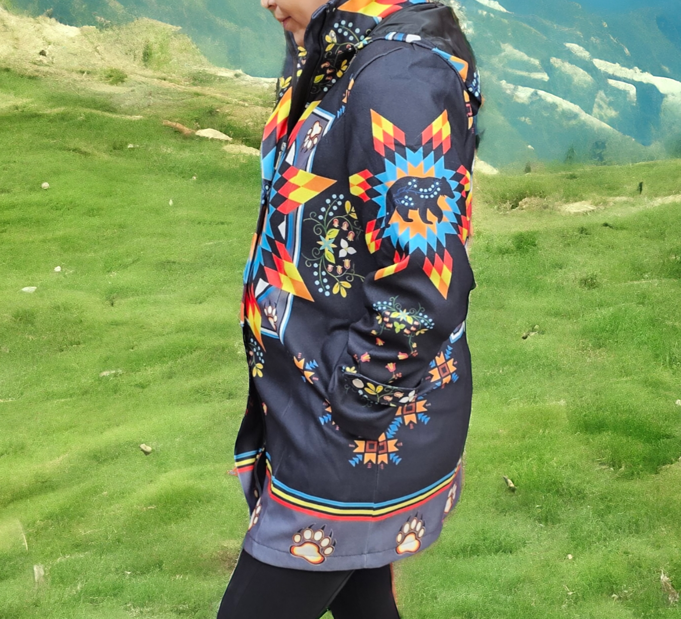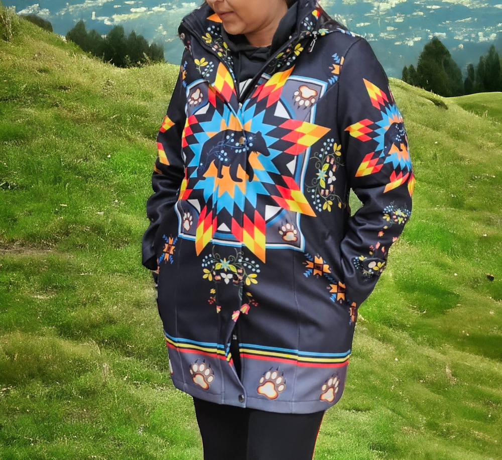 Our jackets come from Indigenous countries—Peru, Guatemala, Mexico, and Ecuador—and are 100% handmade. Our blankets are manufactured in Canada, and our beadwork is made by local artisans in Alberta.