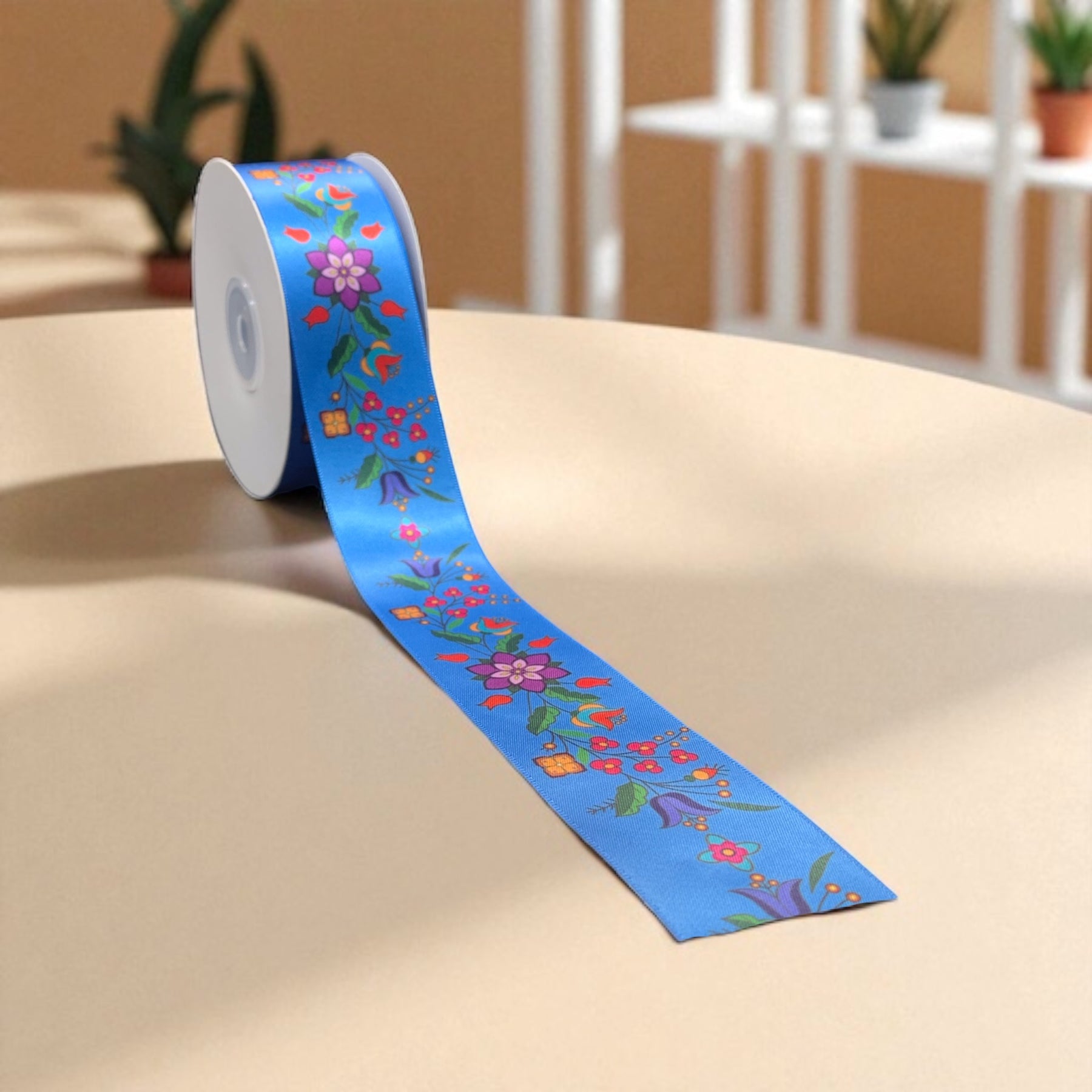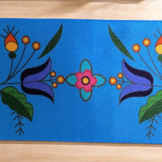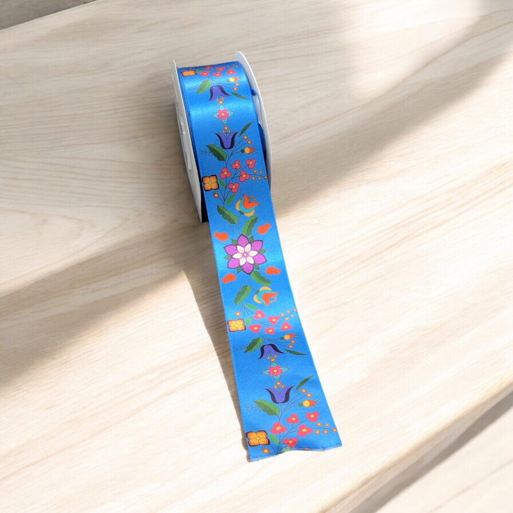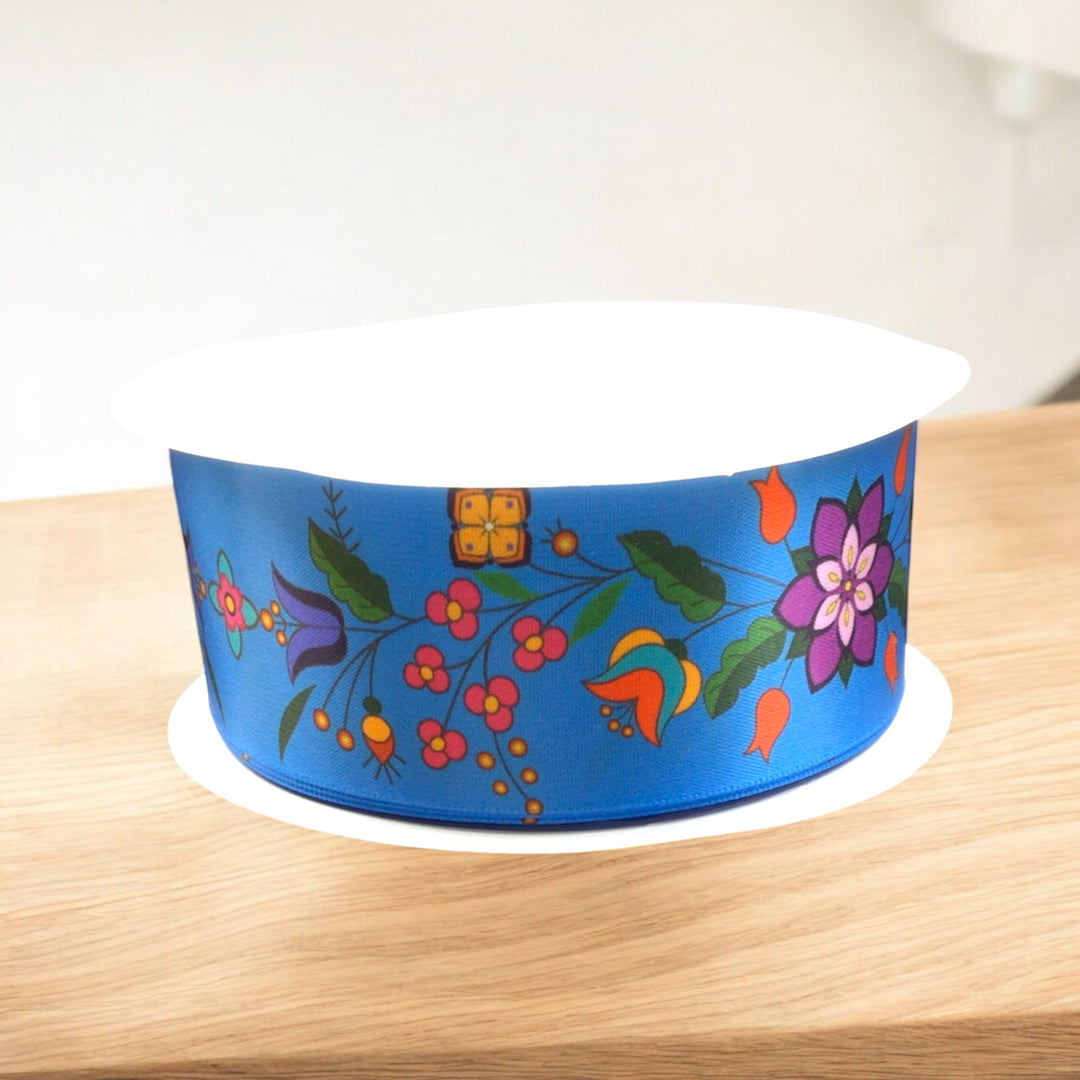 Blue Double Face Floral Ribbon Roll