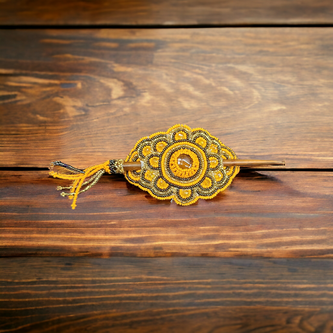 Native American Style  Barrette  measuring 12 cm wide 11/0 Seed Beaded Barrette., Natural Sheesham Wood Hair Stick..